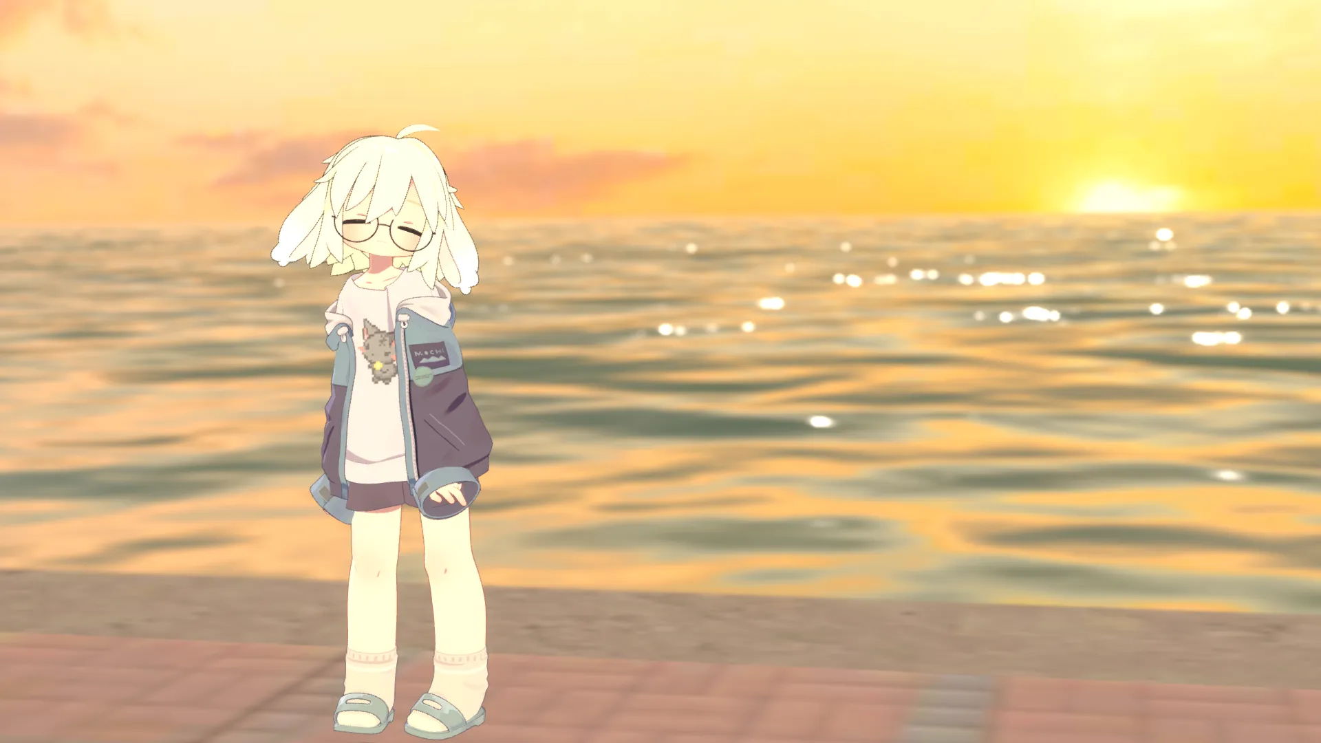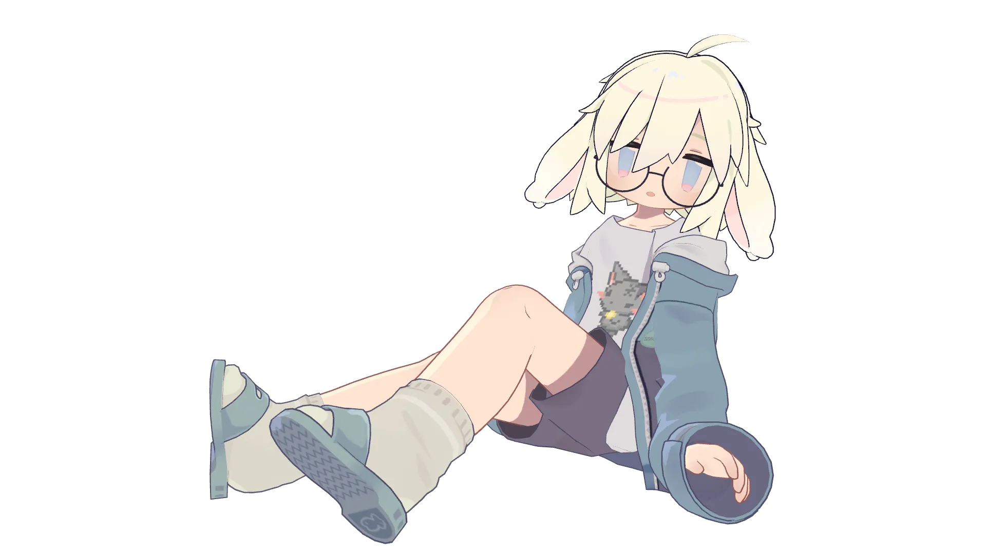 秋月小町VRChat初めてすぐから使い続けている、普段使いうささきです。nnオリジナルのうささきさんの色合いがそもそも好みだったので、パーカー、短パン、サンダルはそのままにしています。nTシャツはあつ森でも使っていたドット絵の猫(ロストくん)。猫好きなのになぜかVRChat初めた初日でうささきに魅入られてしまった民なので、実は最低限の猫好きアピールでもあります(っ'ヮ'c)nn白髪が好みなのでクリーム色ベクトルの白髪に、同じく好みの水色とピンクを入れています。目も水色とピンク。n表情もある程度自分用に改変しています。