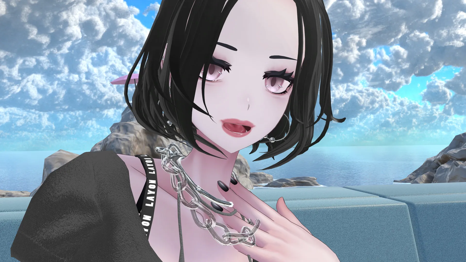 素敵なお洋服を購入したのでリアルに寄せた改変をしてみました!nメイクと瞳は服の雰囲気に合うように濃い目にして黒髪ワンレンボブヘアでまとめました。nnメイクツールはクリップスタジオで、Blenderのワイヤーフレームで表示させたFBXのメッシュとにらめっこしながら描きました??