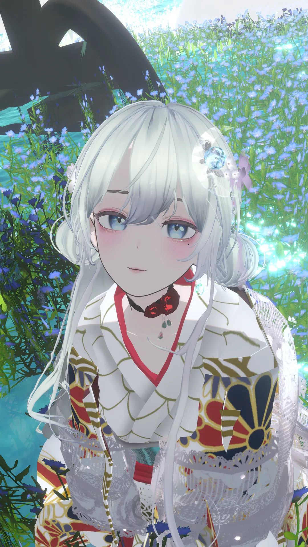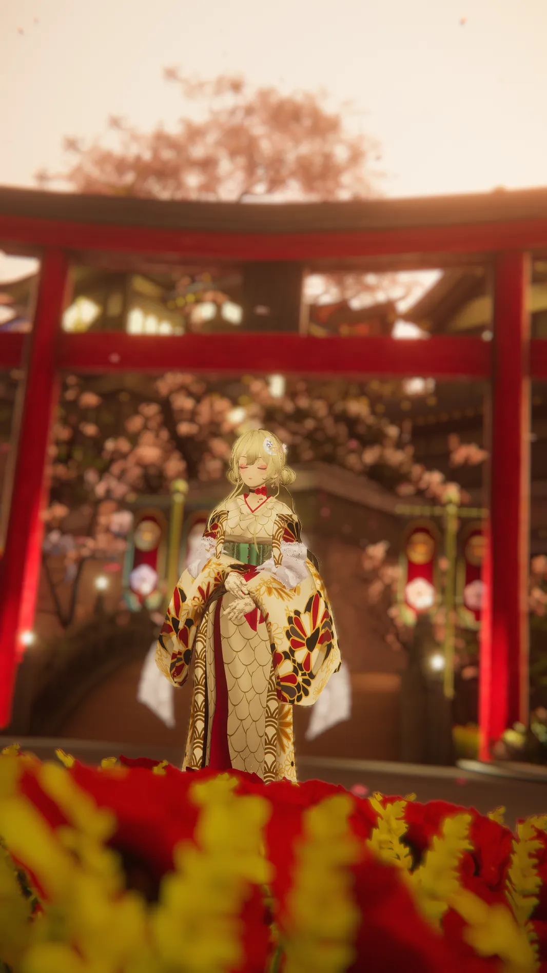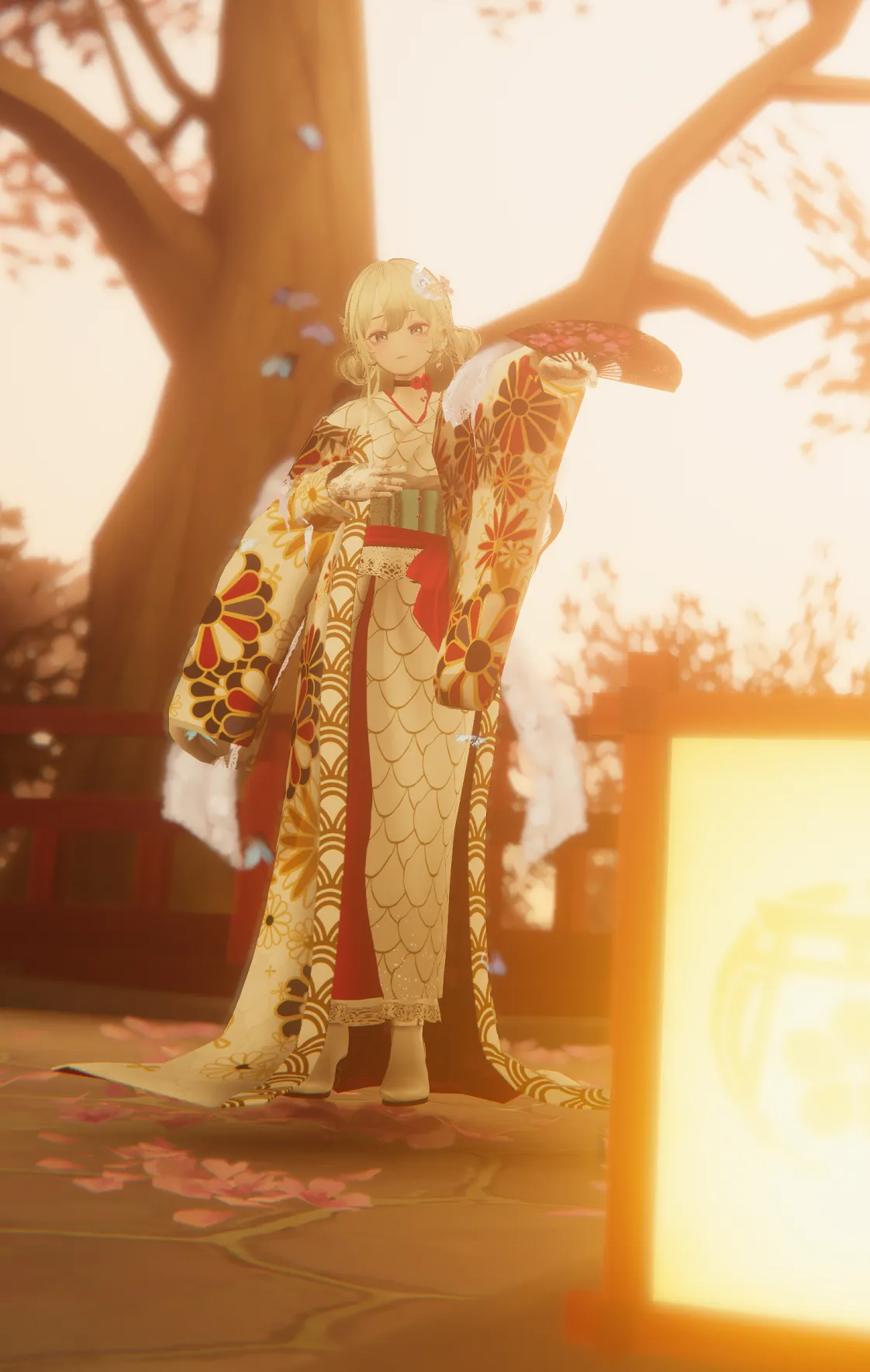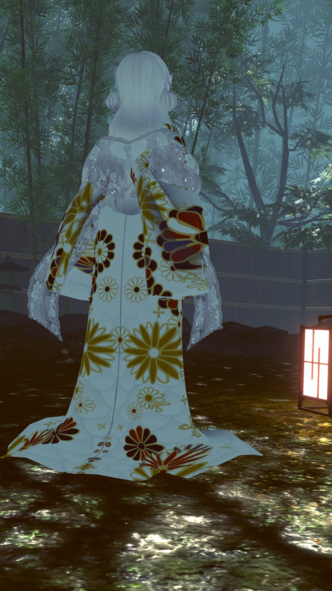 もともとシックなゴシック着物でしたがテクスチャを変えて真逆の華やかなイメージに改変しました。