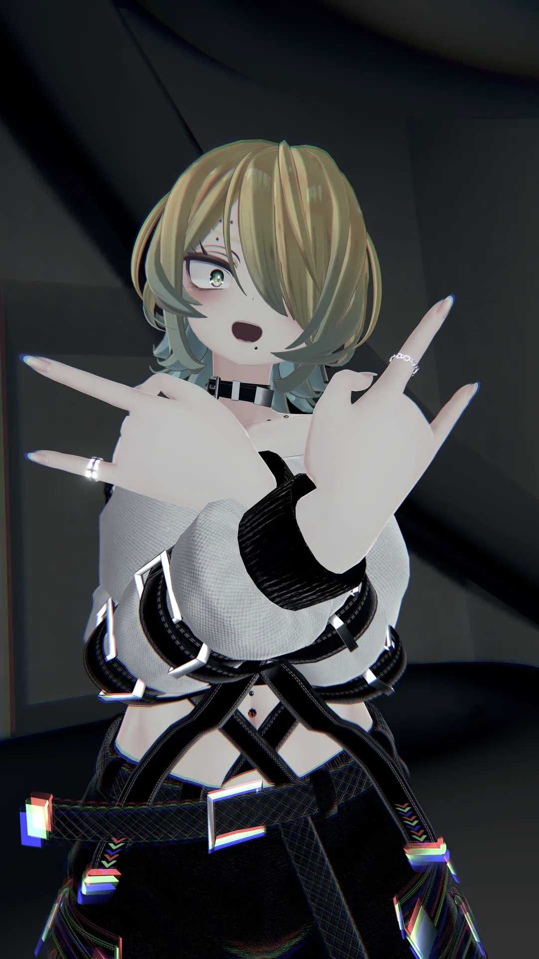 かわいい系が多いセレスティアちゃんをクールな目つきにしてボディピアスを顔につけることによりよりかっこいい感じの改変になってます!衣装はDOXTORE様のPunk outfitを使用。ヘアーはQuQu様の目隠れショートを使用しております。
