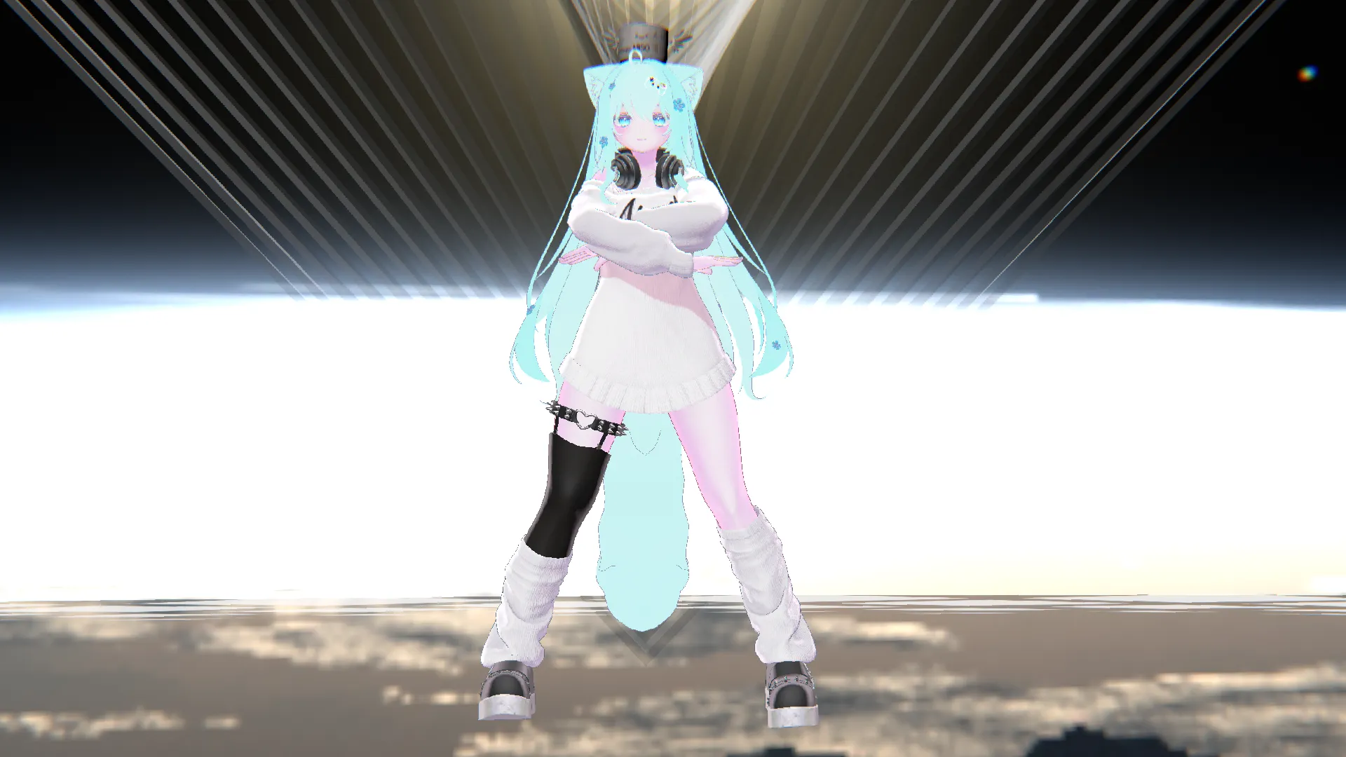 萌ちゃんベースの水色髪でゲーマー女子にしてみました!n頭の上のサバ缶(サカバンバスピス)は非常食ペットでとてもかわいく視線を集めます。