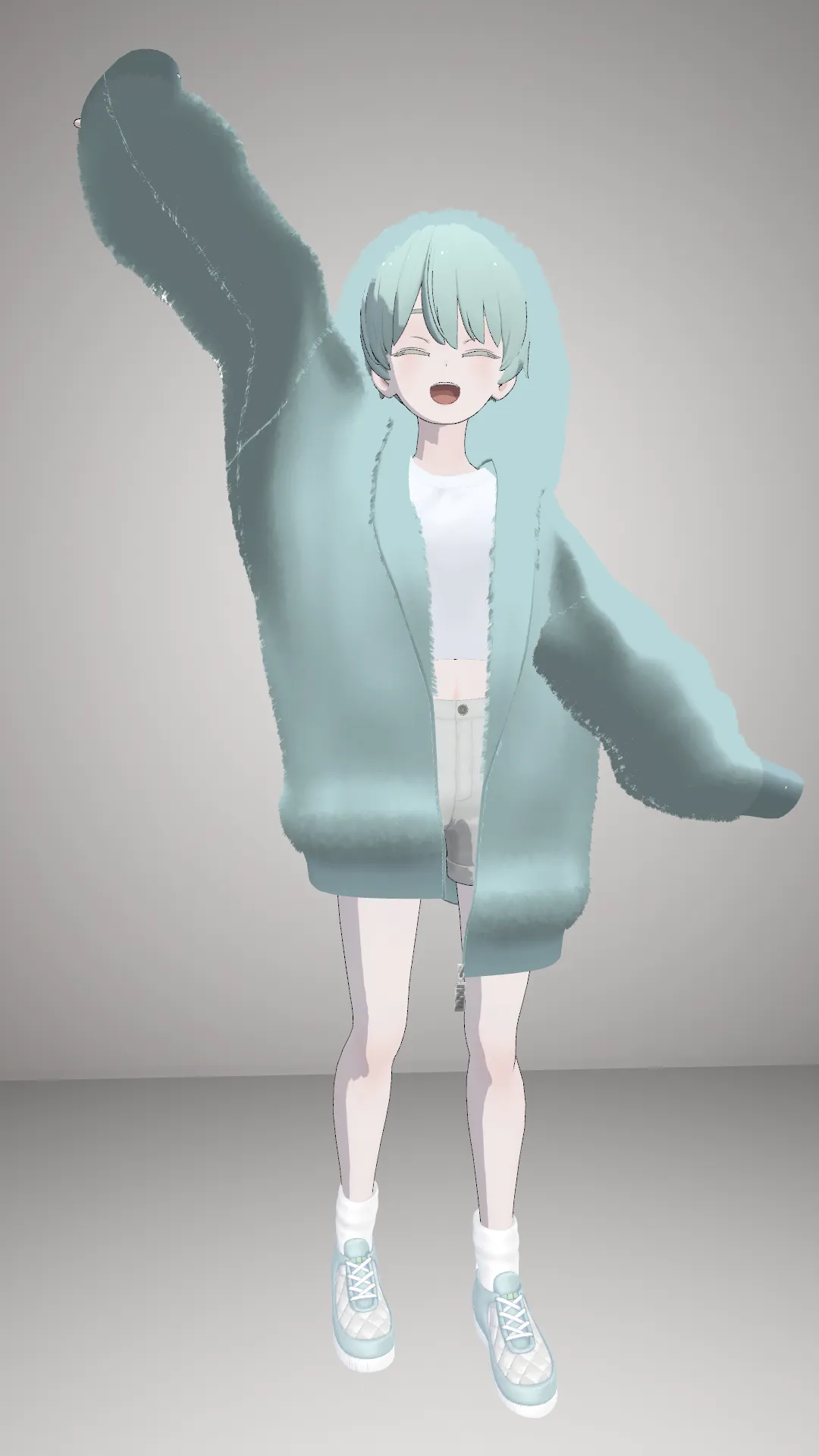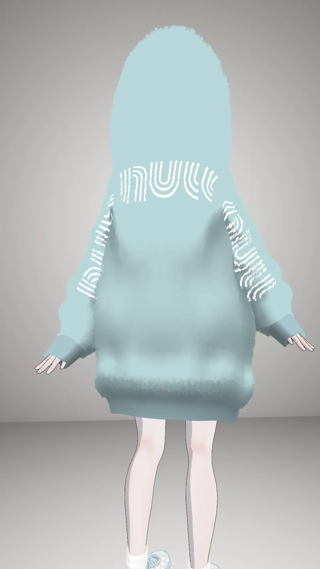 nullの足音さんのパーカーが着たくてコーデを組みました。n色をくすみミントに変更してその他を白に統一、もこもこだけど少し涼しげに見えるようにしてみました。
