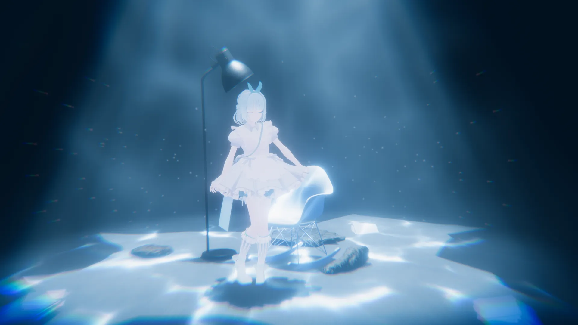 ことねGrus用の久さんが制作しているメイド服を親切なユーザーがLapwing様に合わせたプレファブを配布してくださった事からアリスっぽい改変をしたいなと思いTwitterでゆるく募りアリス改変が始まりました。nふんわりしたイメージですが、記憶を失くしてしまい物語が永遠に進まないアリスという設定です。n白と灰色を基準にしつつディズニーアリスのワンピースが水色なので水色を取り入れました。n今回はblenderを開いてGrus用の靴をLapwingに合わせたり鞄をメイド服の高さに合わせたりリボンをつけたりなどしました。nnアバター&カバン□https://booth.pm/ja/items/4993931n前髪□https://kujishift.booth.pm/items/3251490n後ろ髪□https://booth.pm/ja/items/4841931n後ろ髪リボン□https://booth.pm/ja/items/5040407nカチューシャ□https://booth.pm/ja/items/2664698n服 Lapwing合わせ済□https://kujishift.booth.pm/items/3315922n服のリボン□n鞄□https://booth.pm/ja/items/4993931n靴下 blender調整□https://unya28.booth.pm/items/3727254n靴 blender調整□https://booth.pm/ja/items/4026542