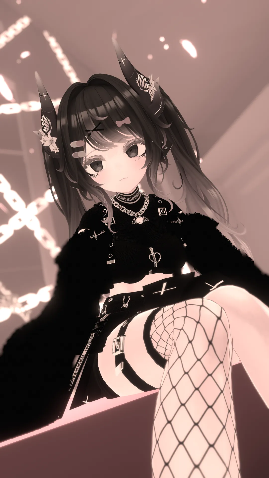 病んでいそうな雰囲気のマヌカちゃん!n黒と紫、パンクな衣装を合わせて不思議な雰囲気を漂わせてる感じにしてみました!