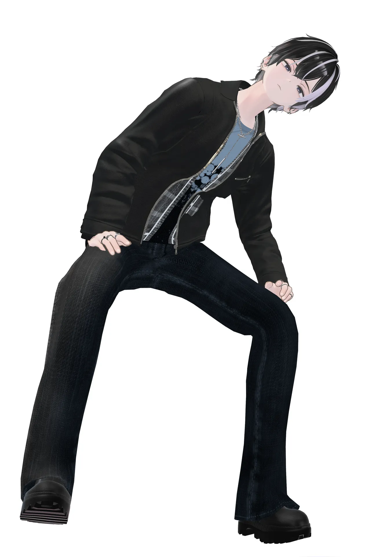 BEAMSの衣装とOGREの革ジャンを合わせてメンズらしいカッコよさを目指しました。