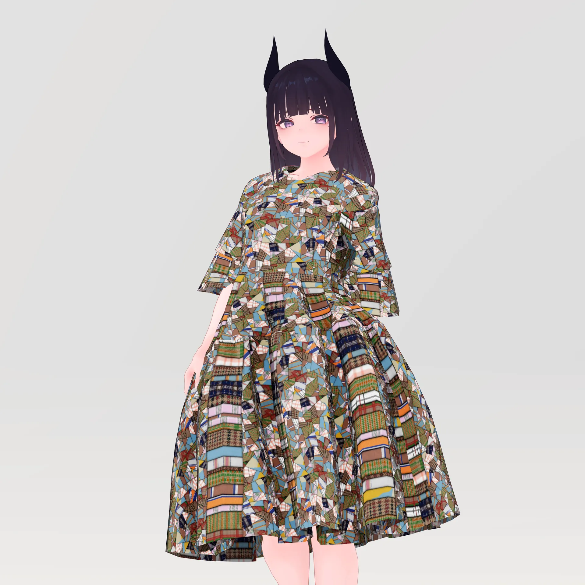 くろなつちゃんをベースにnANREALAGEさんの衣装モデルn【PATCHWORK DRESS】を着せました!nnご興味がある方はアイテムリンクから!