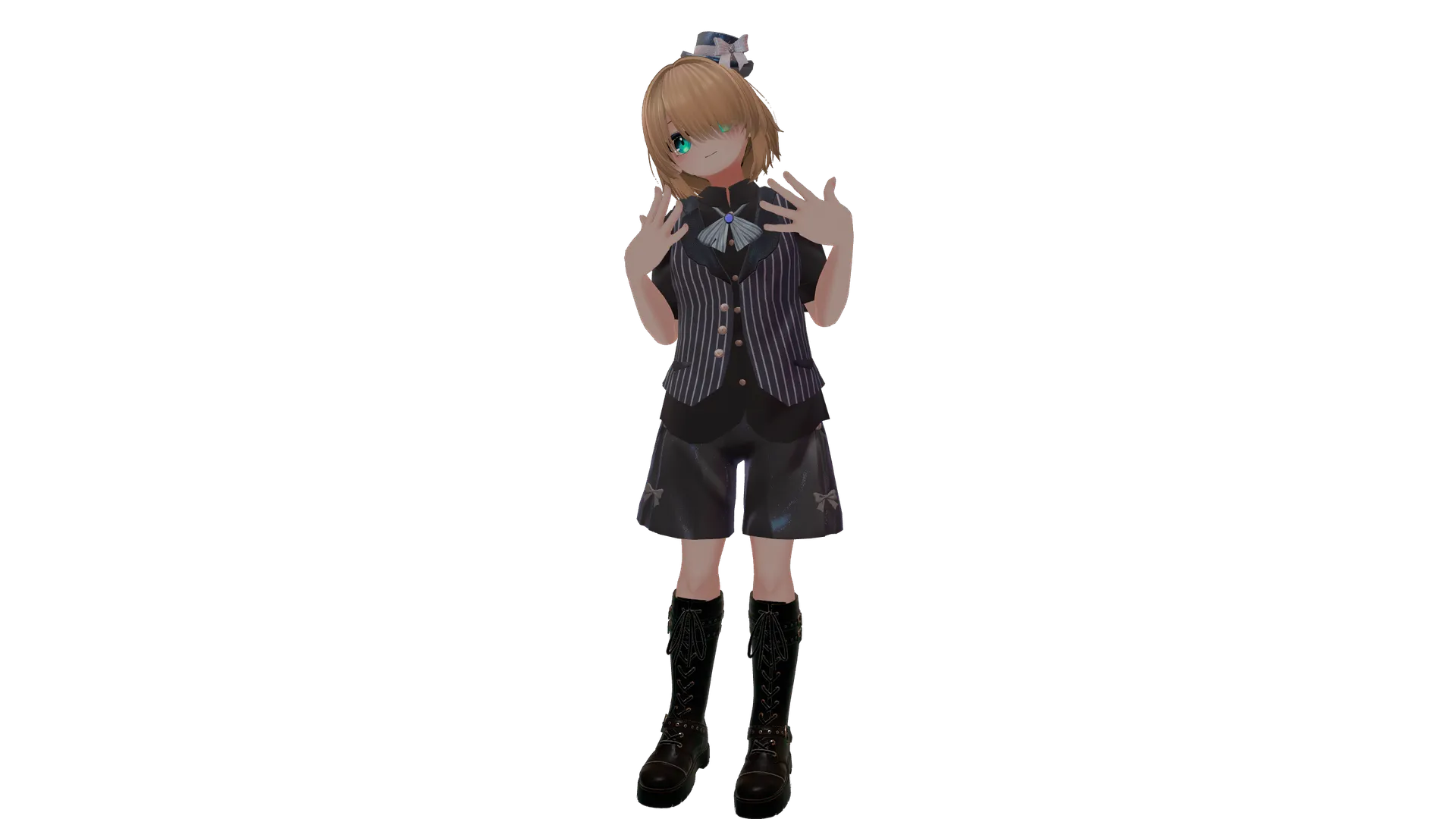 ハオラン君をやんちゃなお坊ちゃん風にしてみました。nn髪型はカリンちゃん用を調整しています。nブーツと髪型でやんちゃな感じが出たかなと思っています??nnアバター:【オリジナル3Dモデル】-ハオラン-HAOLAN/かなリぁさんちn衣装:少年アリス服/はるんち様n髪型:メカクレパンクショートヘア/Zero Gravity Project様nブーツ:long boots 桔梗ちゃん ハオラン君 対応/やわらか快適様