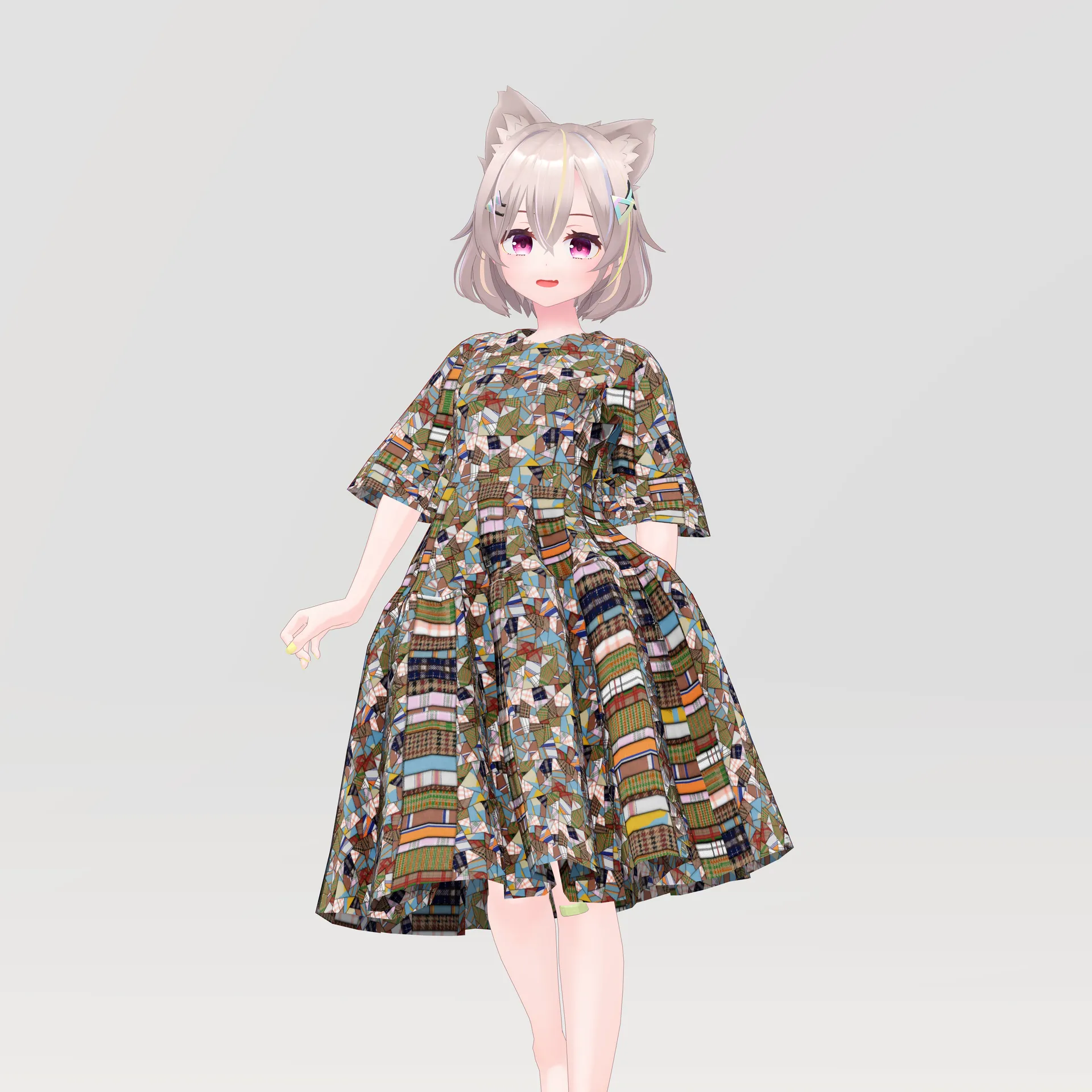 トラスとウェッジのトラスちゃんをベースにnANREALAGEさんの衣装モデルn【PATCHWORK DRESS】を着せました!nnご興味がある方はアイテムリンクから!