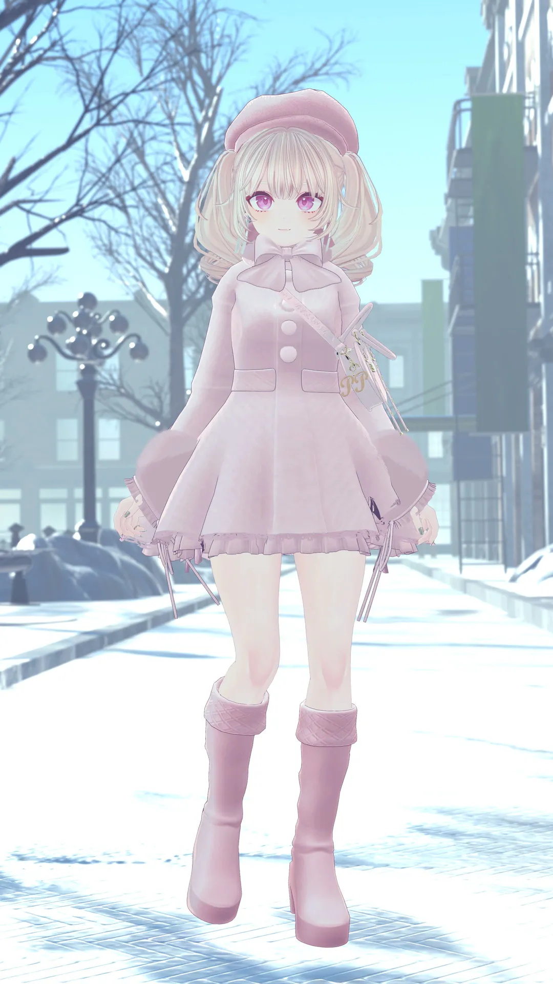 ことね気になっていたRibbonCoatがセールだったので買ってLimeちゃんに着せました。n冬感あふれるモコモコな服でとてもかわいい~~nただの白ではなくベビーピンクぽくしてるのはテクスチャを塗り直したりなどしてます。n※本来は白と黒n結構パンツ丸見えだったので1058martさんのドロワーズを付けてます いつも感謝・・・n冬のお出かけコーデをイメージしているのでPINK?PUDDINGさんのチュチュドレスの鞄を合わせてます。nそして最近てんぱすおおもりさんがショップフォローするとnマフラー・手袋・イヤーマフの無料配布をしてくださったので早速合わせました。nnnアバター□https://komado.booth.pm/items/4876459n髪型□https://booth.pm/ja/items/4799589n服□https://booth.pm/ja/items/5239064nドロワーズ□https://inugoyamart.booth.pm/items/3861035n鞄□https://booth.pm/ja/items/4960620nイヤーマフ・マフラー□てんぱすおおもり(ショップフォローの人のみプレゼント)nネイルチップ・リング□https://booth.pm/ja/items/4979044nピアス□https://booth.pm/ja/items/5168903