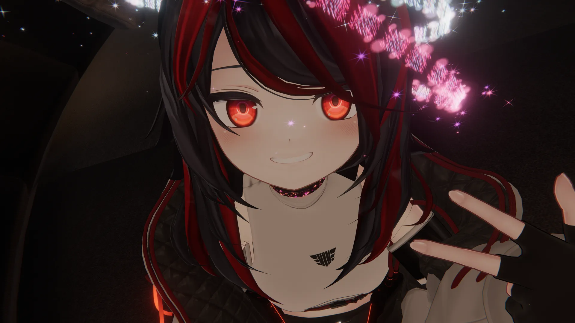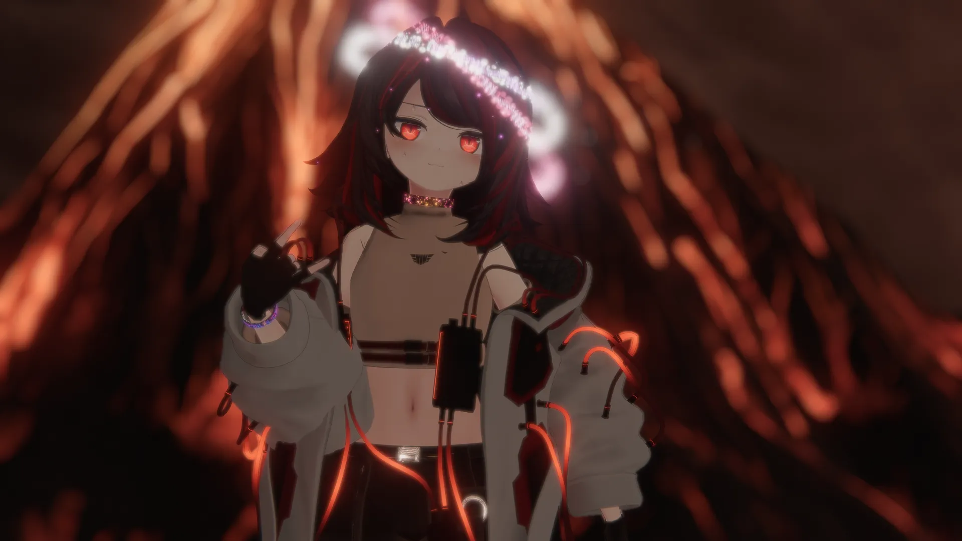 デルタフレアちゃんをサイバーパンク風に改変してみましたn拘りはNNNのフルセット購入特典の腕章パーティクルで頭を飾ったところ