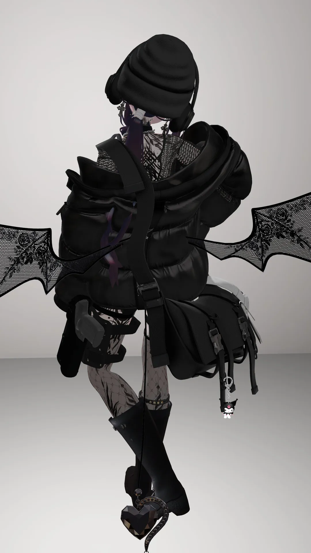 メインアバターは”凪” メインで使用している服は新ブランド”MAISONDARC”のMesh Knit+STREET FLEX PUFFER - Jacketです。n"Pirouette"様のLilith wing・”足村屋”様のレッグリグ+ホルスターを合わせました。nストリートファッション+地雷系の”クール&キュート”を意識して改変しました。