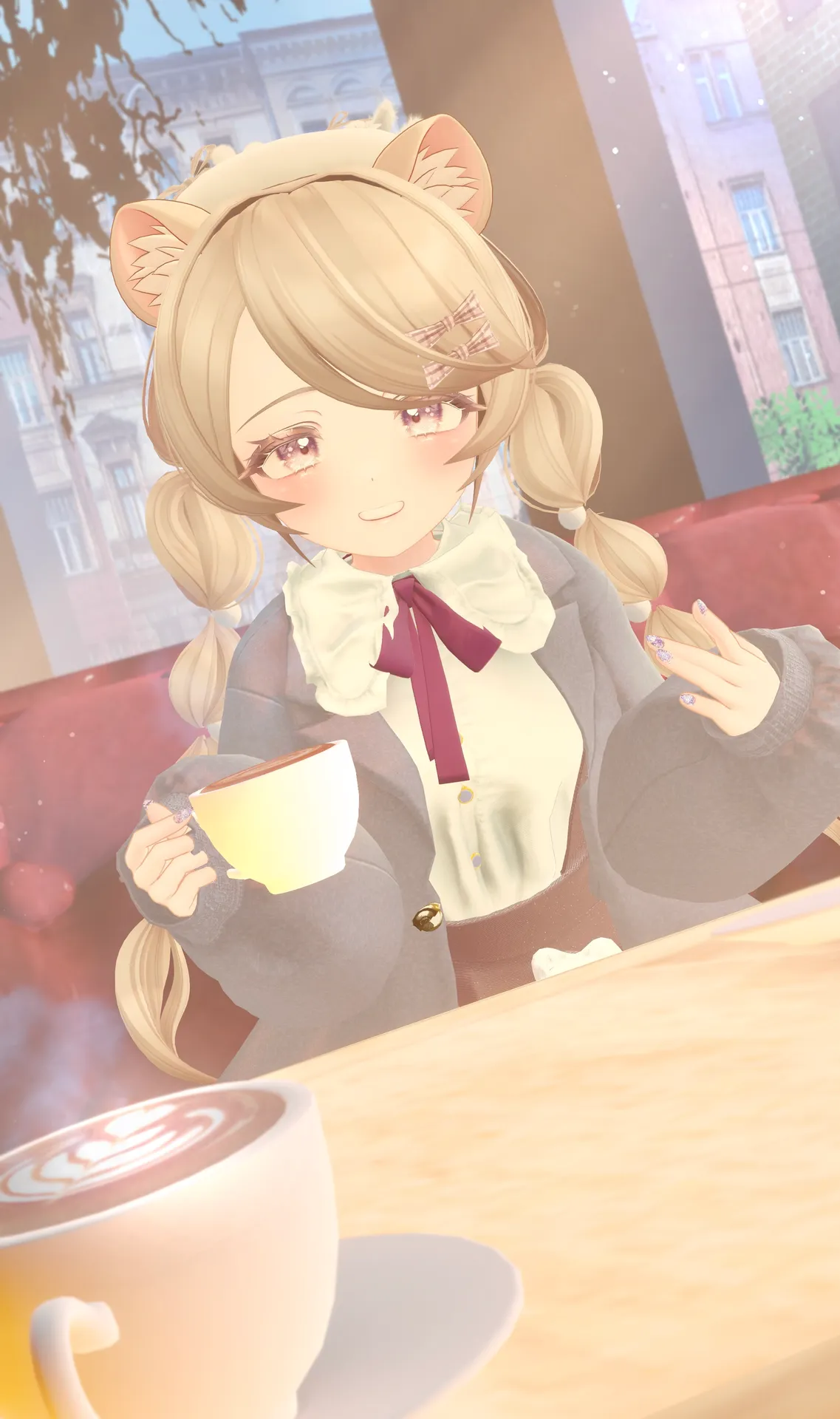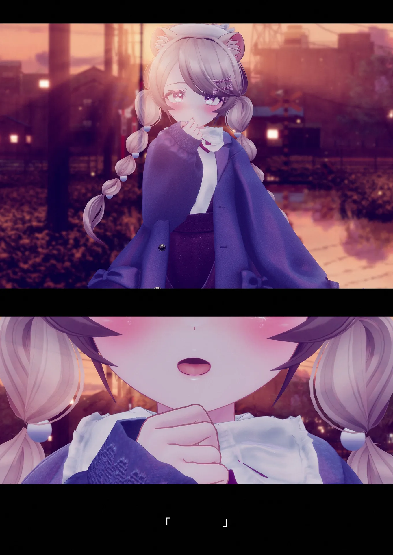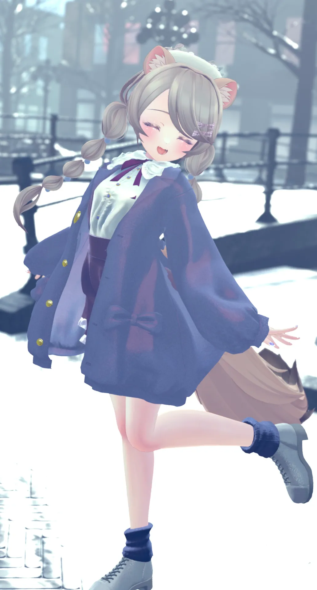 マヌカちゃんでテスターをさせて頂いた衣装です。nnショーパンだけどフリルたっぷりな甘さもあってすっごく可愛い衣装で、nデートの為にお洒落した感を出したかったので髪型や小物で可愛らしく改変しました!nnそしてVRChat内でコートが脱ぎ着できる神仕様!!n(3枚目、4枚目)nそしてラストの帰り道、ついに、、、!!