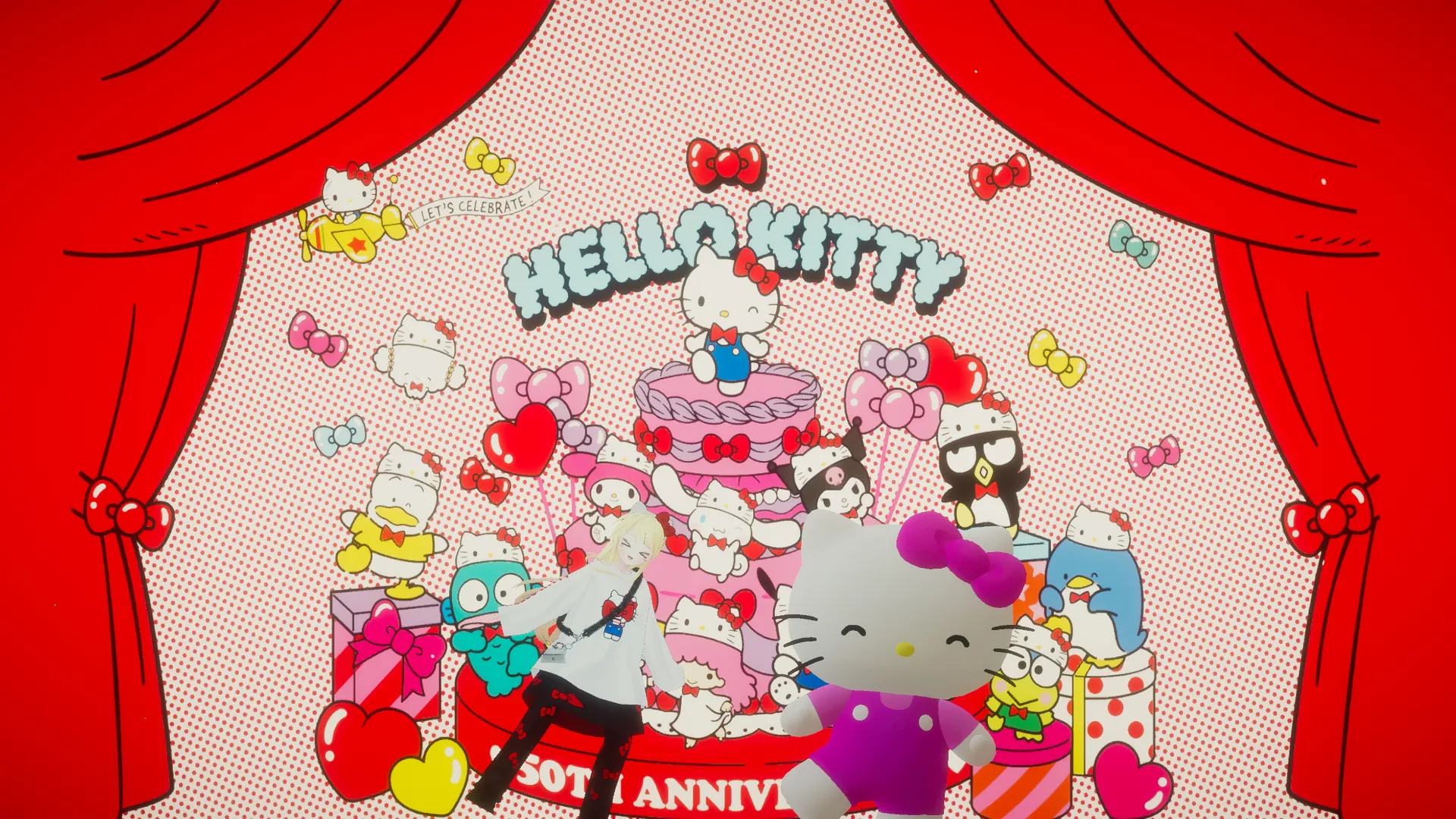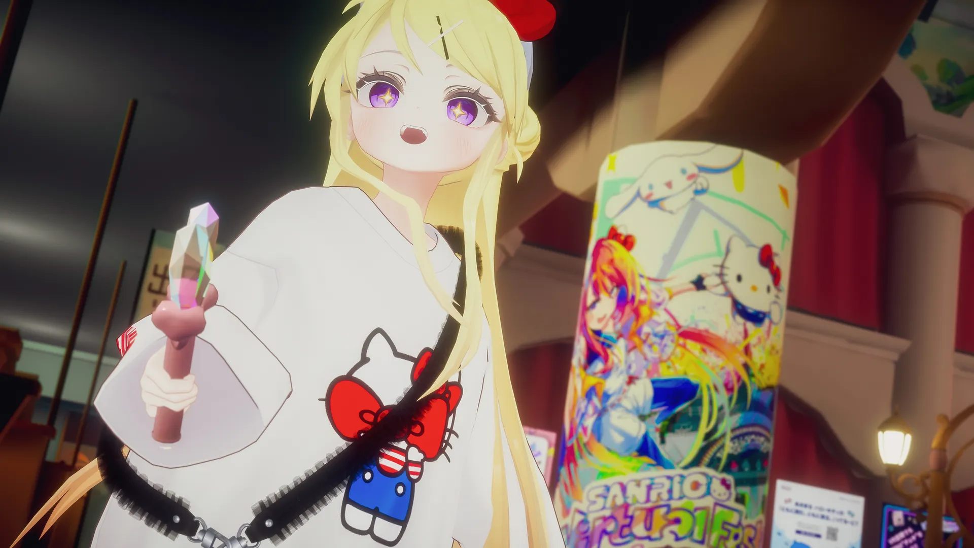 浅田カズラマヌカベースの九条カレンに、ドットエスティの「LOWRYS FARM + Me% ×ハローキティコラボ」を着てもらいました。nついでにカチューシャもハートライトも持っちゃってご機嫌に。ピューロランド満喫してもらいましょうや。nnどのコラボアイテム着てもらうかは若干考えましたが、カレンならウキウキでキティちゃん選んでくれるんじゃないかなって。nn【ベース】マヌカn【服】ドットエスティ×サンリオキャラクターコラボ/LOWRYS FARM + Me% ×ハローキティコラボ n【瞳テクスチャ】【 VRChat 】 マヌカちゃん用SIMPLE EYE + CHEEKn【サンリオ公式アイテム】カチューシャ ハローキティ、ハートライト
