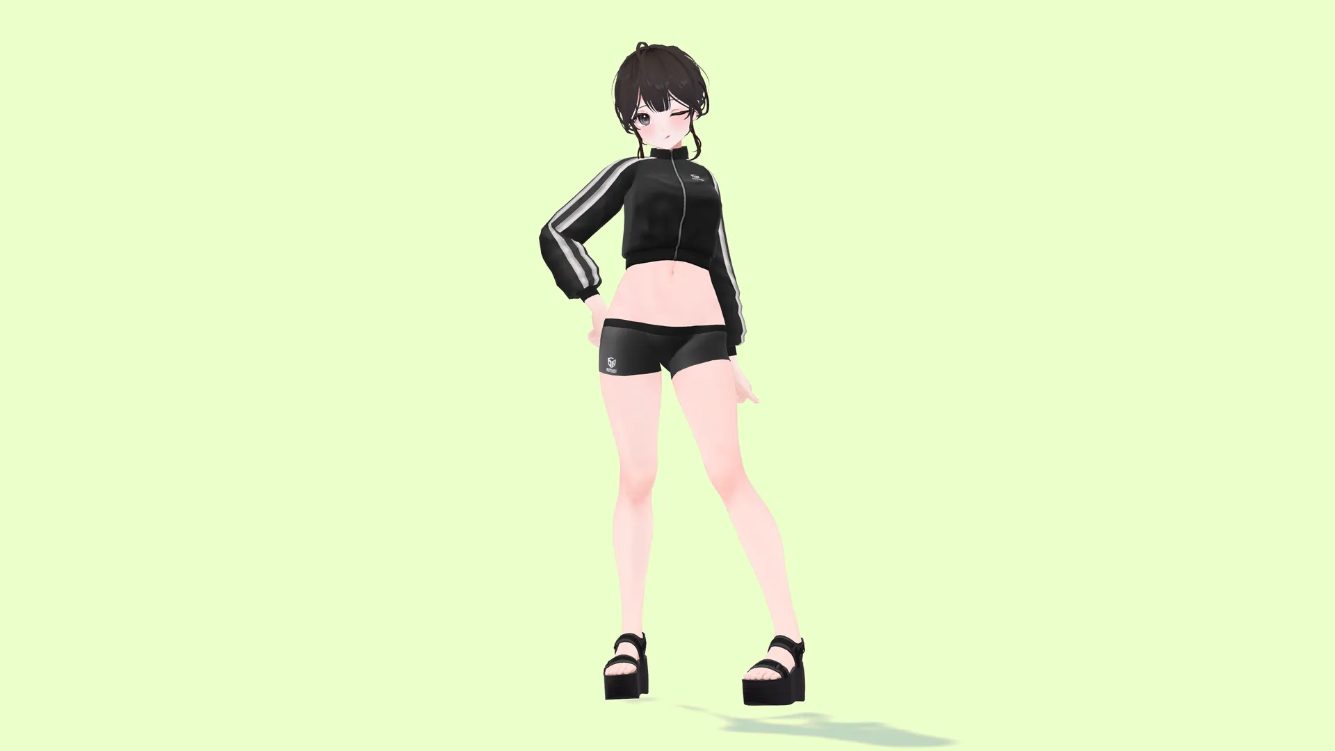 スポーティなヘソ出しジャケットに一目惚れして導入した衣装ですn驚くべきことに、これでアバターランクがmediumというのがすごいnnそれぞれのパーツでほかの衣装と組み合わせがしやすいのも魅力
