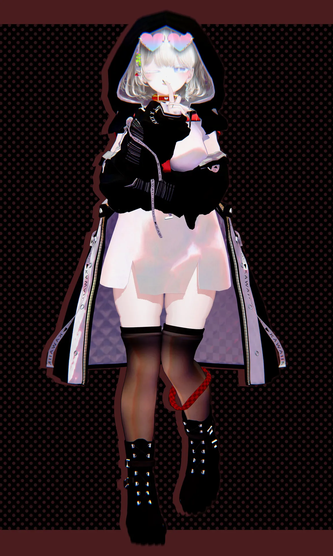 あいかわらぼ様と甘音しぃら先生のコラボお洋服!n大きめフードと上着がついていて、中はゆったりめでもふとももがみえるデザインがよき・・!