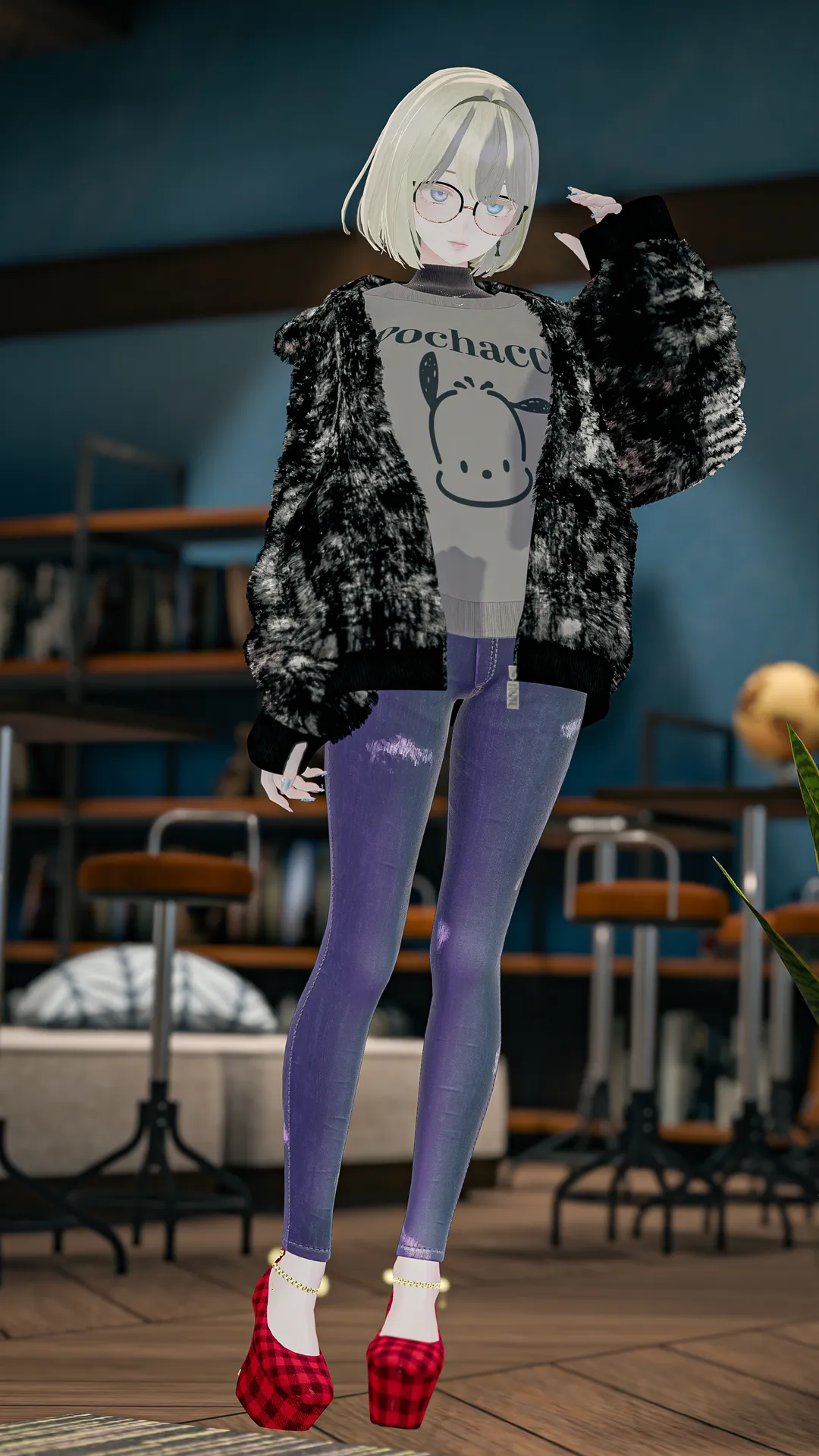 ドットエスティさんのポチャッコの服をメインに大人カジュアルコーデですn赤いハイヒールを自然に、カジュアルに、を意識してコーデしていますn??はMeltylilyさんのものです?