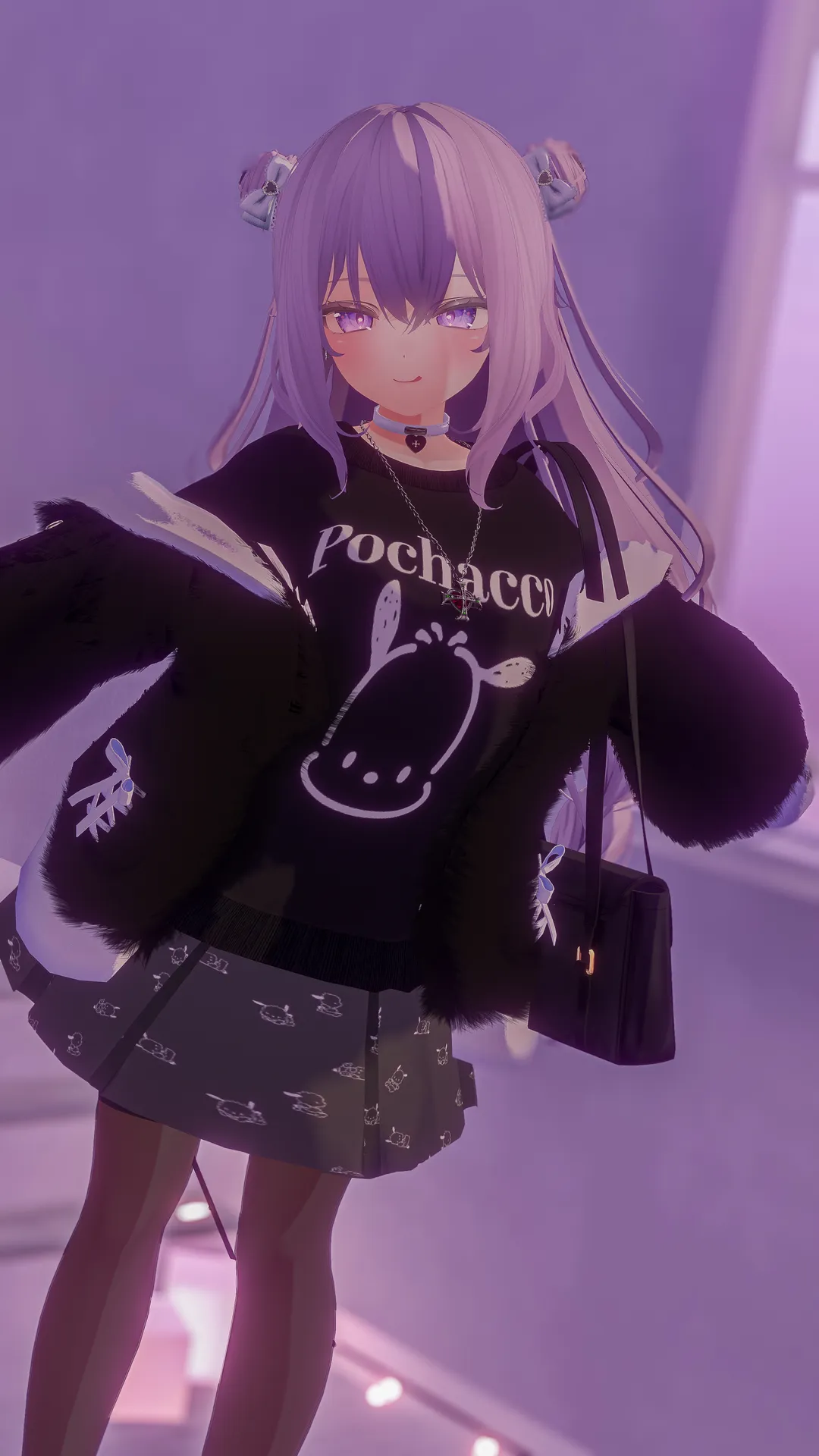 ドットエスティメタバースさんのサンリオコーデ第3弾はマヌカちゃん×地雷風×ポチャッコです?nカジュアルなポチャッコのニットとワンピに合わせて地雷っぽいアウターや靴などを合わせて地雷服が好きな女の子でも着れるぞ…!という気持ちで作りました!