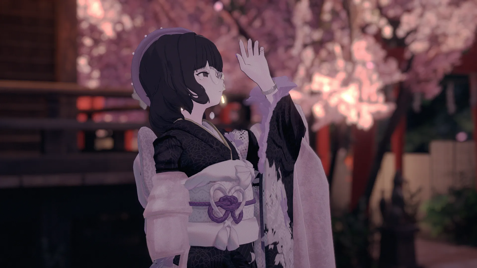 和風なネイルチップと着物のヨザクラを意識した組み合わせ!nnネイルチップは、あんらぼぶい様より提供を受けています。