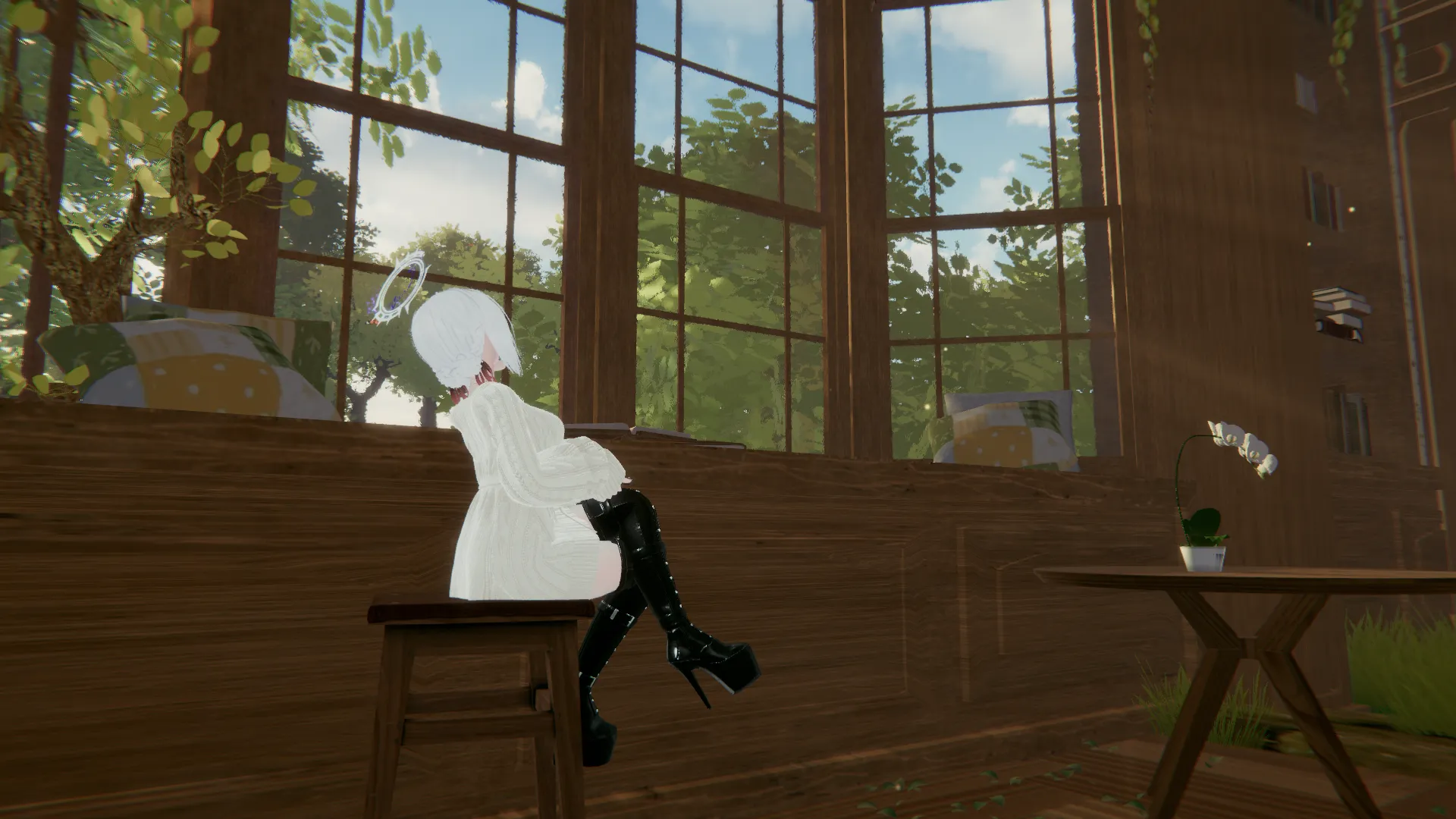初投稿です!n桔梗用衣装のふんわりとしたニットをメインにしたコーデですn上半身は白を基調に清楚っぽく、下は反対にゴシックな黒のハイヒールブーツを着用しています!nnちょっと暖かくなってくるこれからの時期にぴったりなコーデです??nnHeadはリーファちゃん、Bodyには桔梗ちゃんを使用しています!