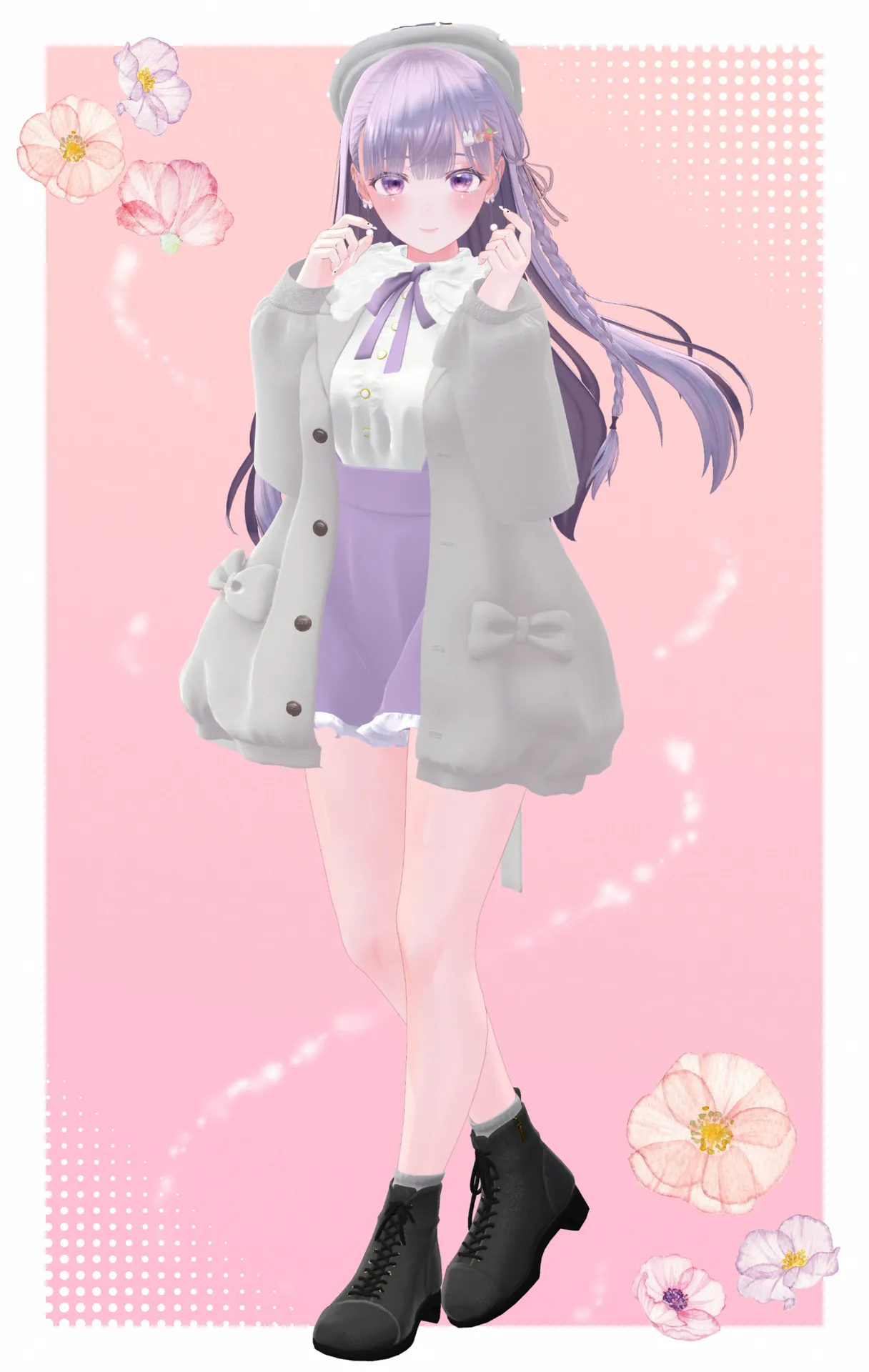 大好き衣装Crashonyouから遂に!桔梗ちゃん対応が!!nなので早速着せてみました!!!!nn春色マテリアルも追加されていたので、ちょこっと色味を変えてグレージュ×パープルな色味にしております。nアクセはフレンドさん方が販売してるのです???????ピンクかわいい!n