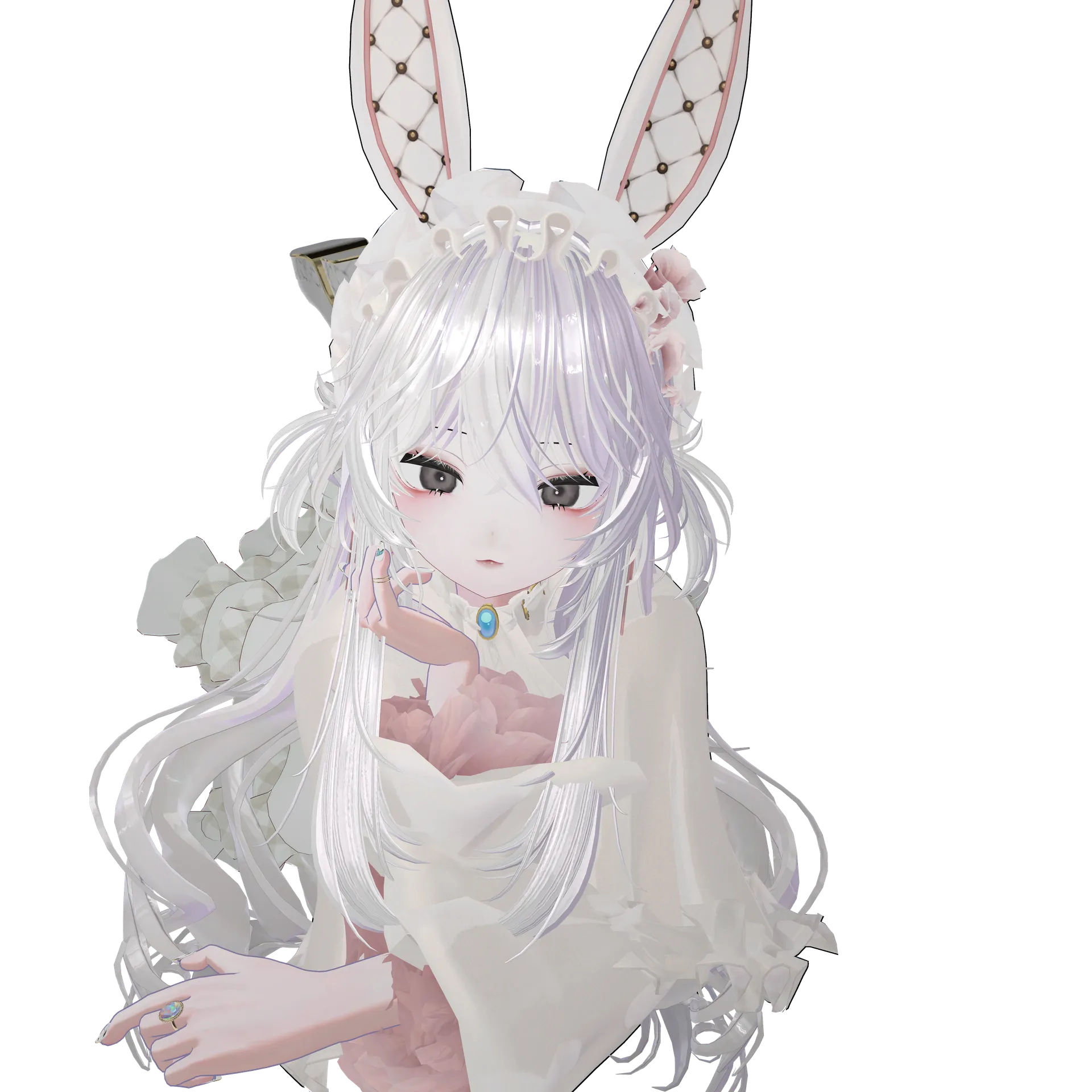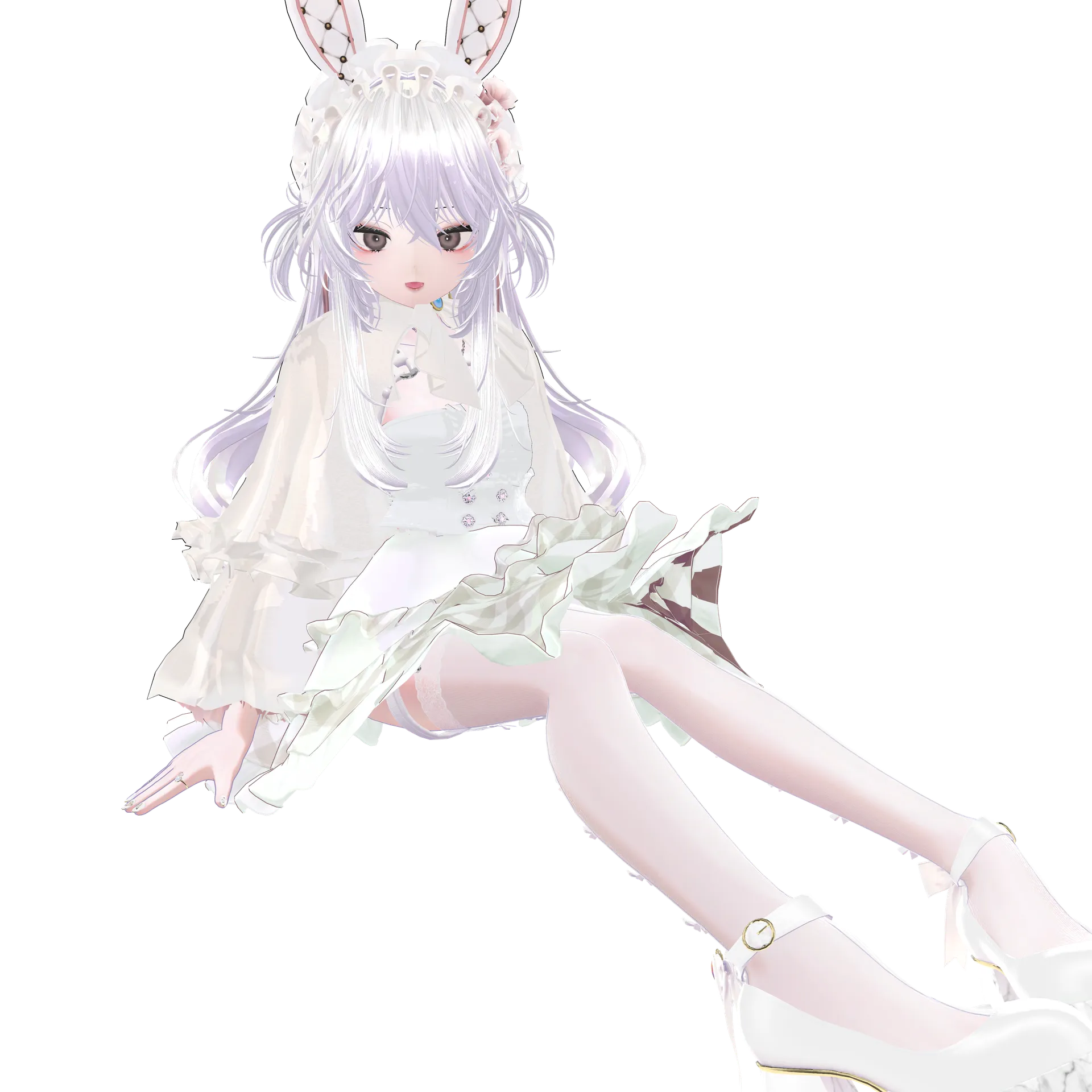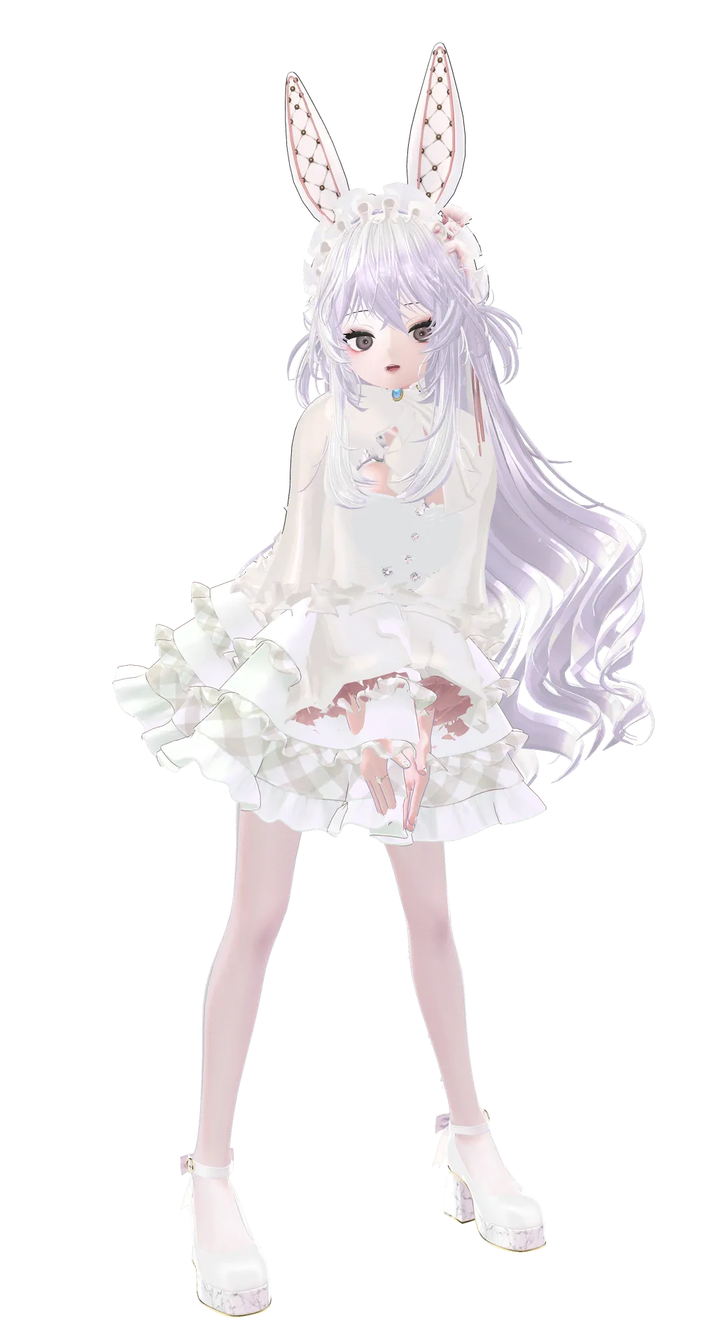 バニースーツ以外のアイテムで、ウサギっぽさと白ロリータを合わせたくてコーディネートしました。