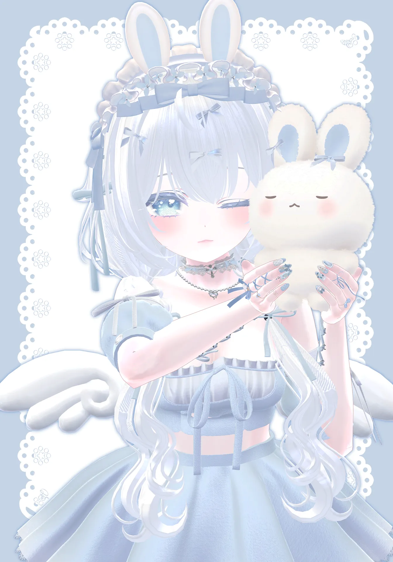 このネイル・・・というか手のアクセサリーに合う改変をしました!n大好きな水色とうさぎさんで?