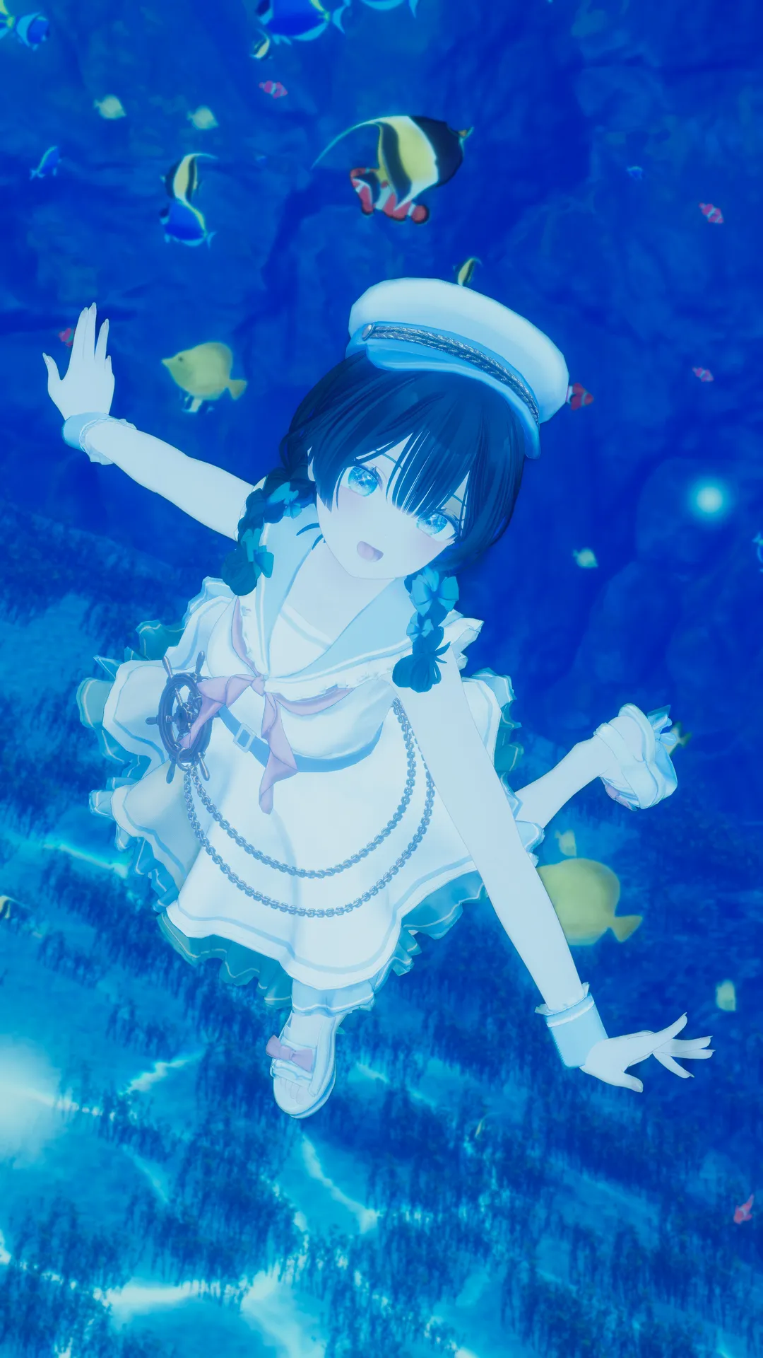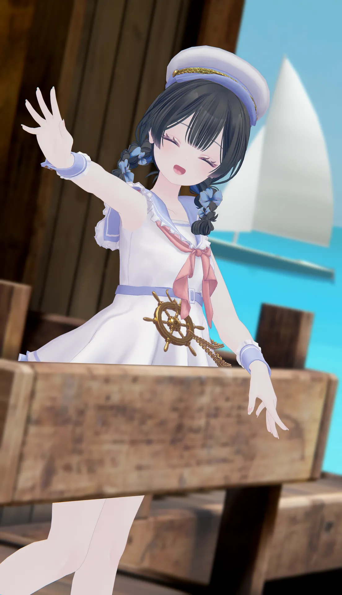 マリンルックで元気いっぱい!な撮影がしたかったので、改変した黒髪ライムちゃんです。nn髪型はライムちゃんにばっちり合ったかつセーラー服との親和性が良かったりぼんおさげ?n当時はQuQuさんの限定福袋で買ったのですが、Boothでも単体商品が出ててにこ、、、となりましたn短めな丈感も揺れもばっちりで元気系な印象になれましたー!nnこれ撮った当時はお写真解禁前だったのでn水はブラシで描きました!一人芝居!!悲しいね!!!笑
