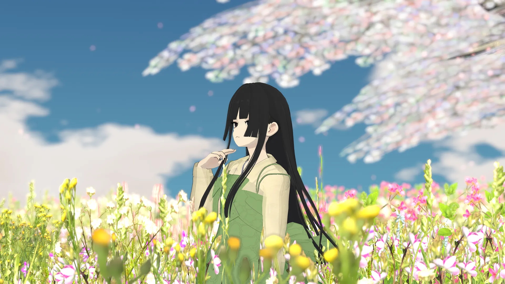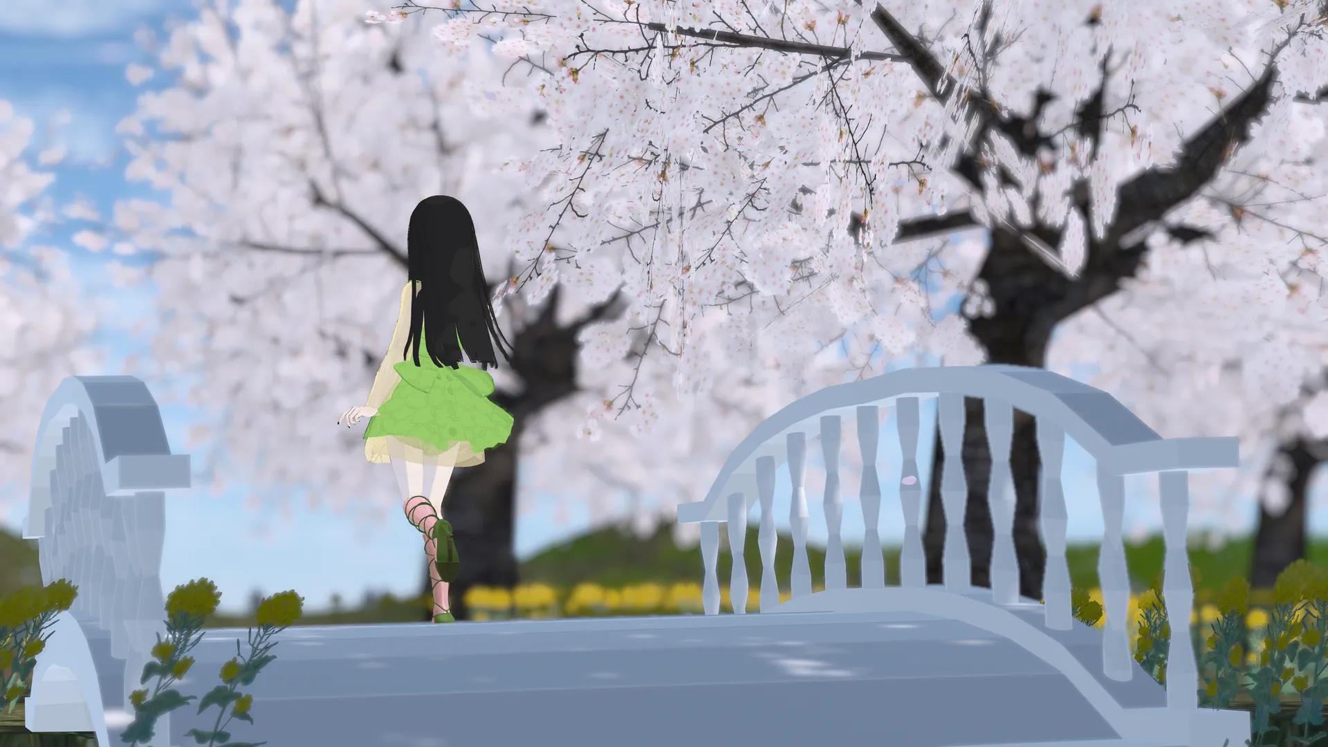 くらげなまにく桜、たんぽぽ、ラベンダーなど、春をイメージした色を使って改変をしましたnnワンピースにもう1つリボンを増やして可愛らしさを強調、足元はキレイめにしてバランスを取りましたnまた、柔らかい雰囲気にしたかったのでキルティングのようなテクスチャを自作しましたn花畑に融け込む素敵な子ができて嬉しいです?nnWorldnhttps://vrchat.com/home/world/wrld_a5e9ec13-36b1-4e63-ae0c-dab9023401f9nhttps://vrchat.com/home/world/wrld_28f71874-c6ef-4db3-b980-0d054ce582b2nhttps://vrchat.com/home/world/wrld_88c782d2-de43-4128-89c6-2de1432fd795