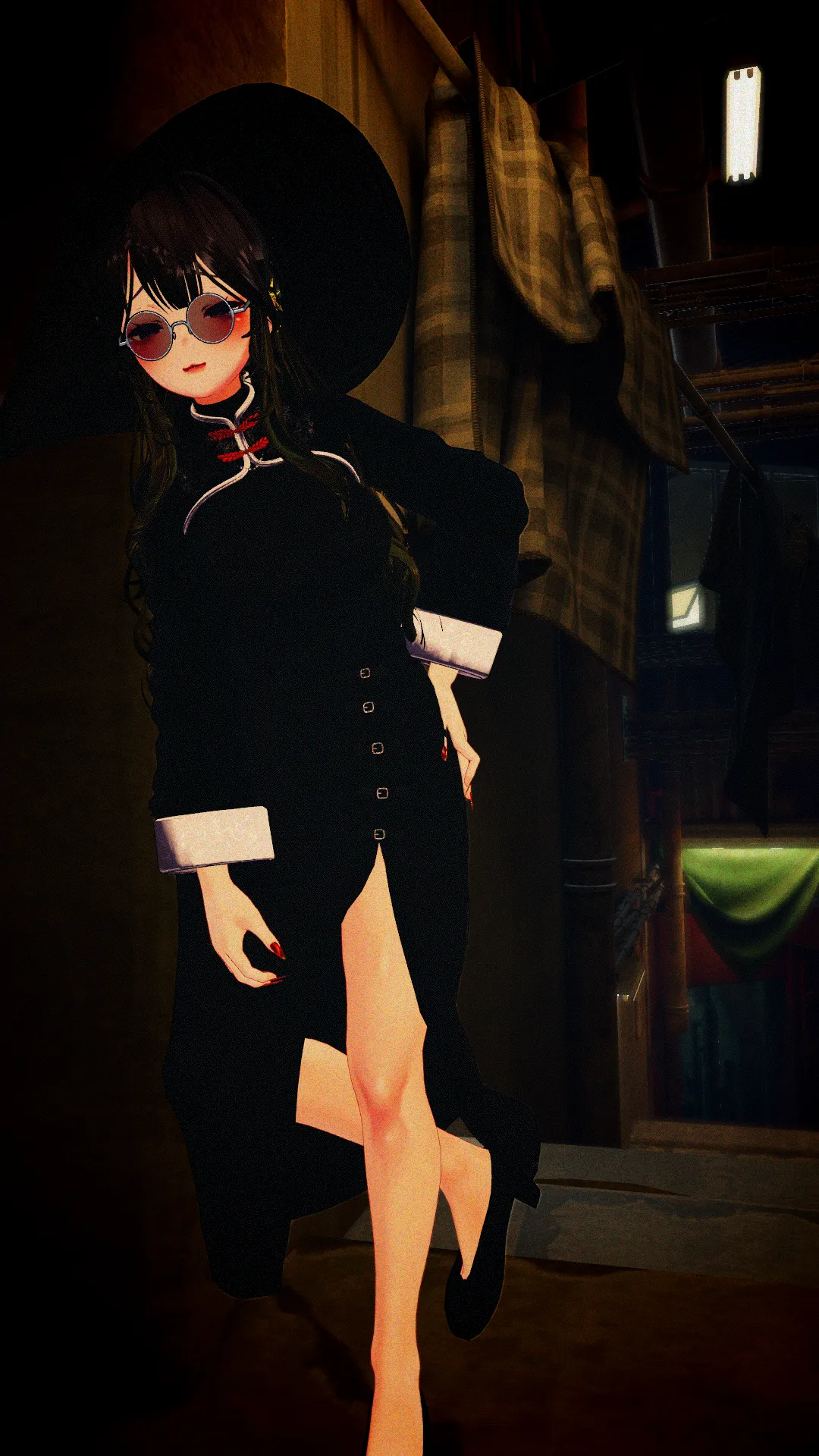 桔梗ベースn「桔梗カジュアルセット」と「パンツスタイルチャイナ服」を組み合わせて黒いチャイナ服風にしました。
