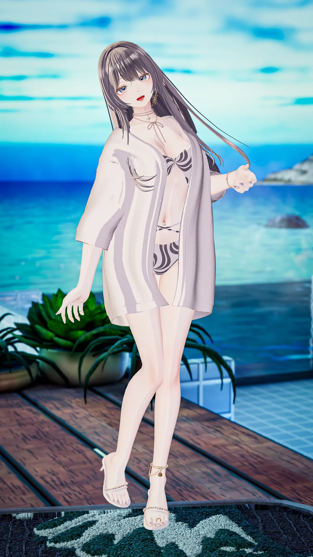 ドットエスティさんの新作のカーディガンを使用して、夏っぽいコーデに!n今回は2WAY仕様にしてみました?n1枚目はミニのキャミワンピと合わせて別荘とかでゆっくりできるようなスタイルに対して、n2枚目は水着と合わせて海でのバカンスも出来ちゃう!nナトリエさんのお洋服はシンプルオシャレなので相性ばっちりです??n