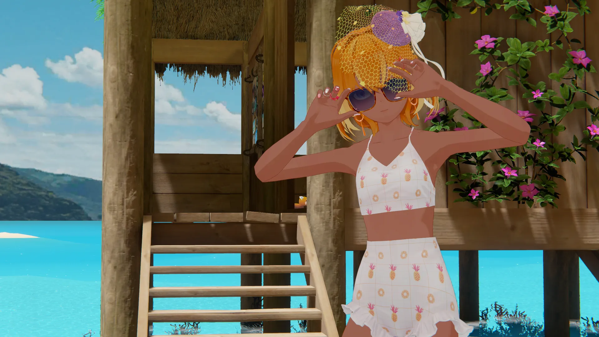 ことね連投すいません、、、!前回の子の別カラーVerです。nblueに比べ色合いは挑戦的にあまり使わない色合いに挑戦しました。n暑い夏!と夕暮れをイメージし、褐色っ子を作りたかったので仕上がった改変です。nもう少しいじっていこうかな~と思います!!nnアイテクスチャはM_vrcさんのShutter Eyeをすこし加筆して遊ばせていただいてます!n魅力的なアイテクスチャで素敵なのに無料。。。!nnアバター□https://booth.pm/ja/items/4993931nアイテクスチャ□https://mvrc.booth.pm/items/5017139n髪型□https://booth.pm/ja/items/4841931n水着/服□https://booth.pm/ja/items/5706343n帽子□https://osatoubox.booth.pm/items/4366322nネイル□https://booth.pm/ja/items/5652457nサングラス□https://www.fanbox.cc/@minuetdoll/posts/7724771nサングラス2□https://booth.pm/ja/items/4028557