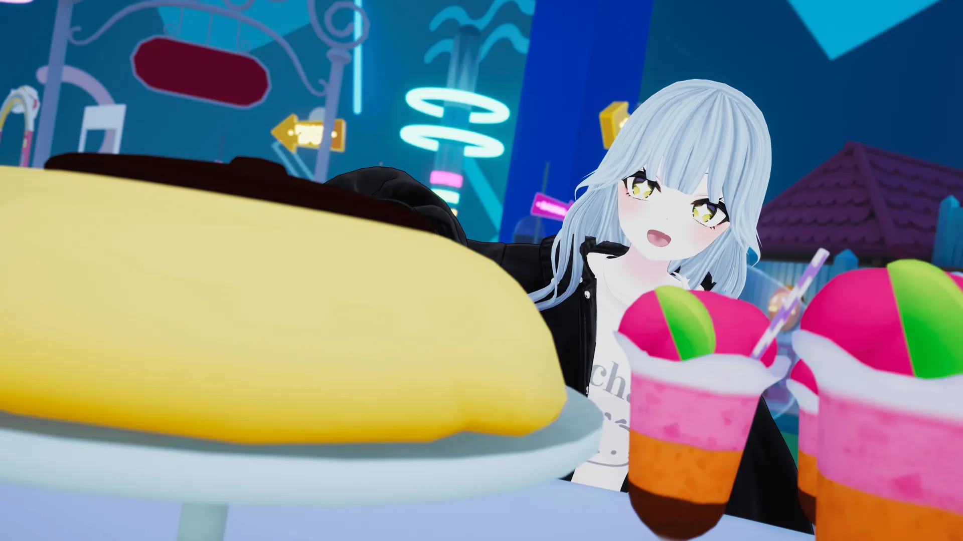 「サンリオVfes2024」合わせコーデ。「Heather×ポチャッココラボ」着用。n手元に冬コーデもあったので、せっかくなのでHeather合わせ。意外にフィットしました。こういうのできるのがアパレル発3D衣装って感じでいいですな。n東京女子ヘア使ってるこのリーファちゃんを引っ張り出したのはひさびさ。なんとなく社会人想定のキャラクターなんだけど、若干おさなげに見えるのはシルエット大きめになった影響かしら。