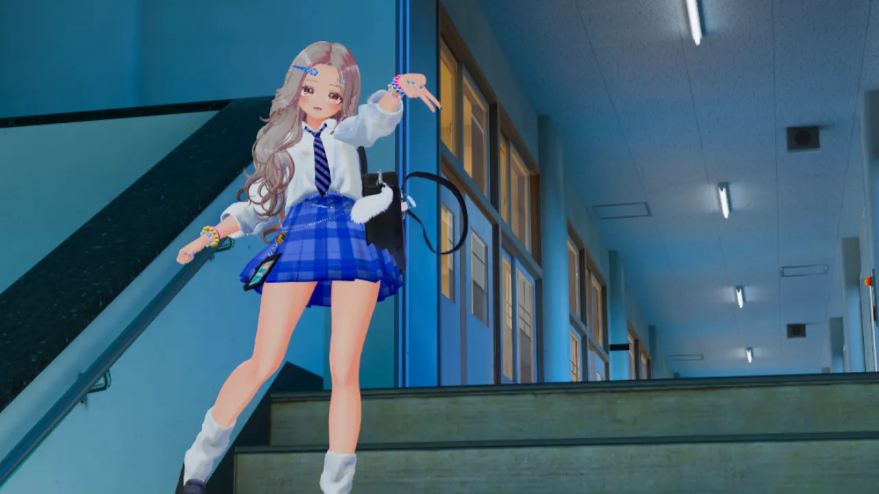 n2000年代初期のギャルをイメージした改変です!nハイビスカスのアクセサリーを沢山つけました!nn自分で作ったギャルメイク(ポスカ・オレンジチーク・髪色に合わせた眉毛)とShape Keyで1番長くしたまつ毛でコギャル感を出しました。nn緩いネクタイとバック・スカート周り・両腕のアクセサリーのうるささがお気に入りです☆nnnn