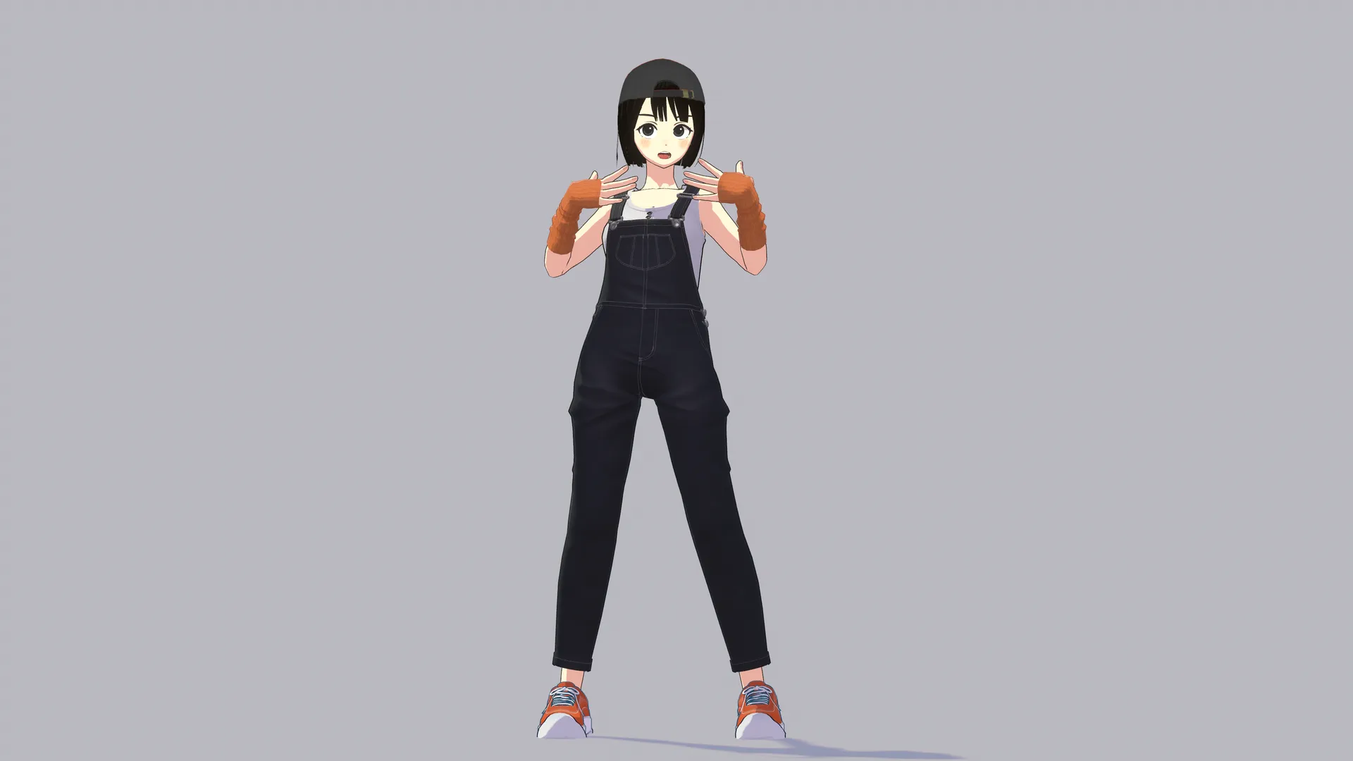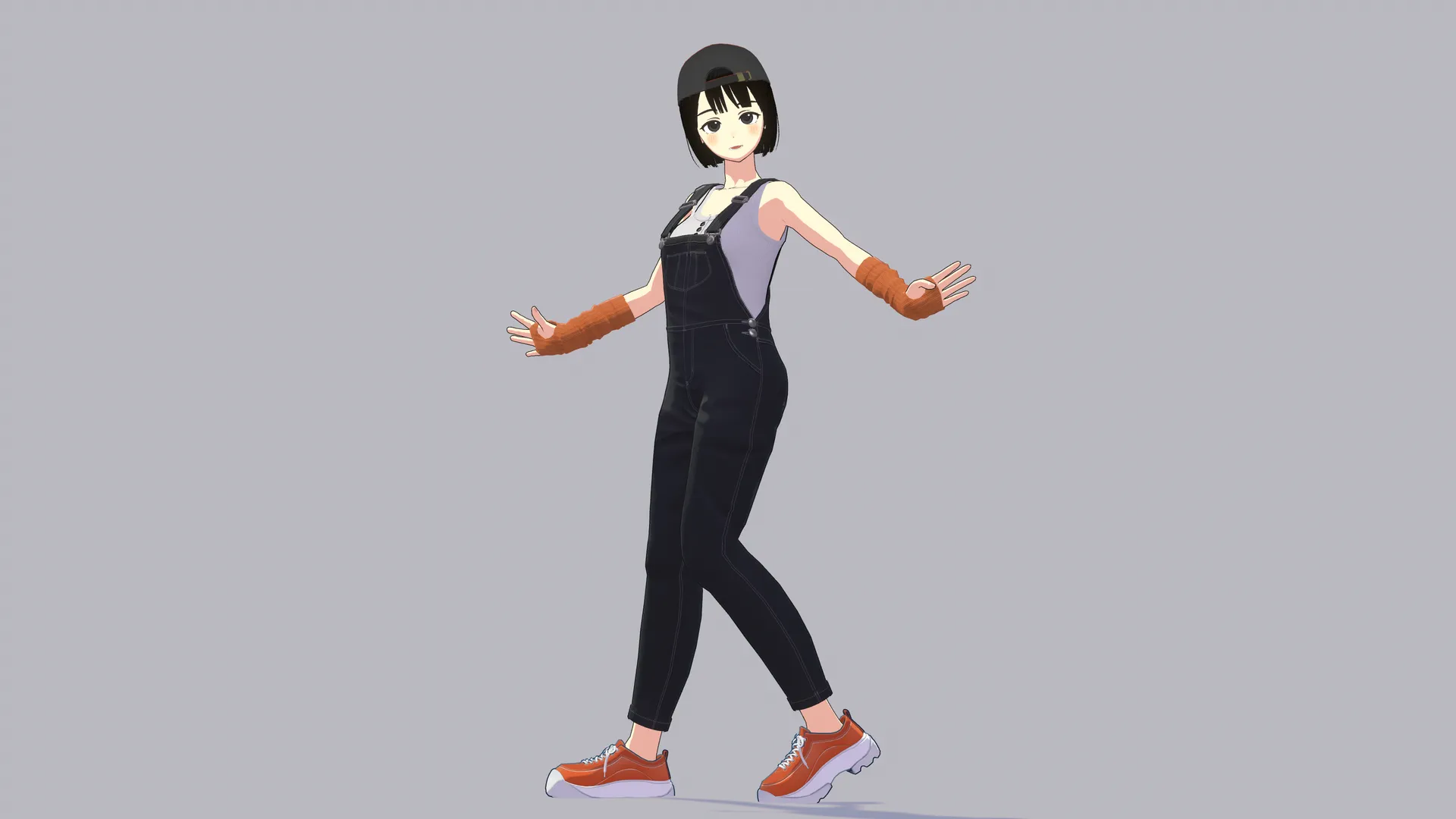 墨澄ちゃんに対応のオーバーオールを着せました!nn野外に活発に動き回ることを考えていたので、スニーカーはデフォルトのものを残しました。n色合いは黒&オレンジの2色nn元々の墨澄ちゃんの雰囲気を残すべく衣装のシェーダーもデフォルトのアニメタッチ寄りにしてあります。n