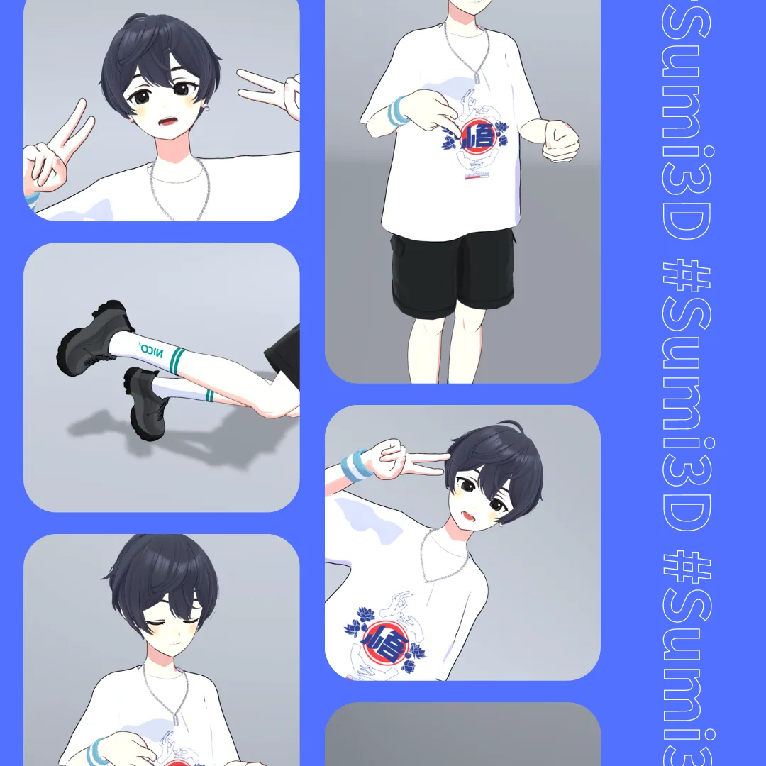 墨澄を少年ぽくなるように改変しました!nピアスやネックレスや、ロゴが大きく入った靴下など小物にもこだわってます