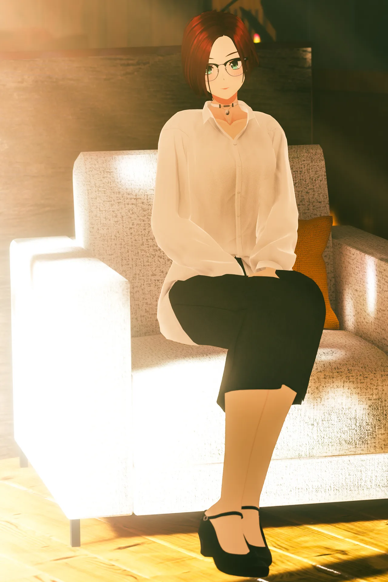 長めなスカート、シャツとパンプスできっちりきれいめな感じを目指しました