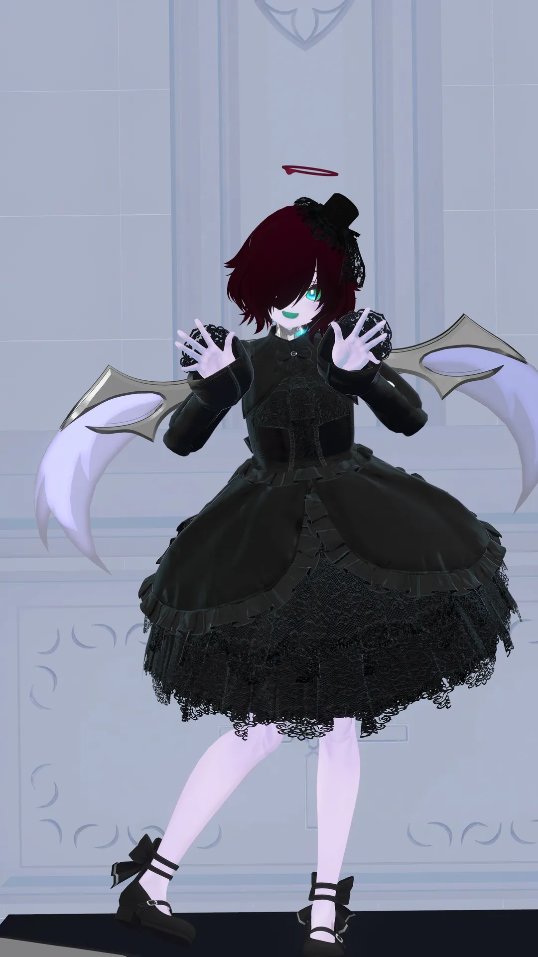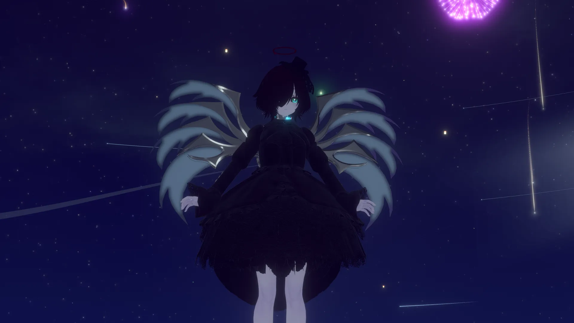 紫肌の天使(?)n前髪が「けだるげロングヘア」で、後ろ髪が「びしょぬれのしずくさん」の髪型