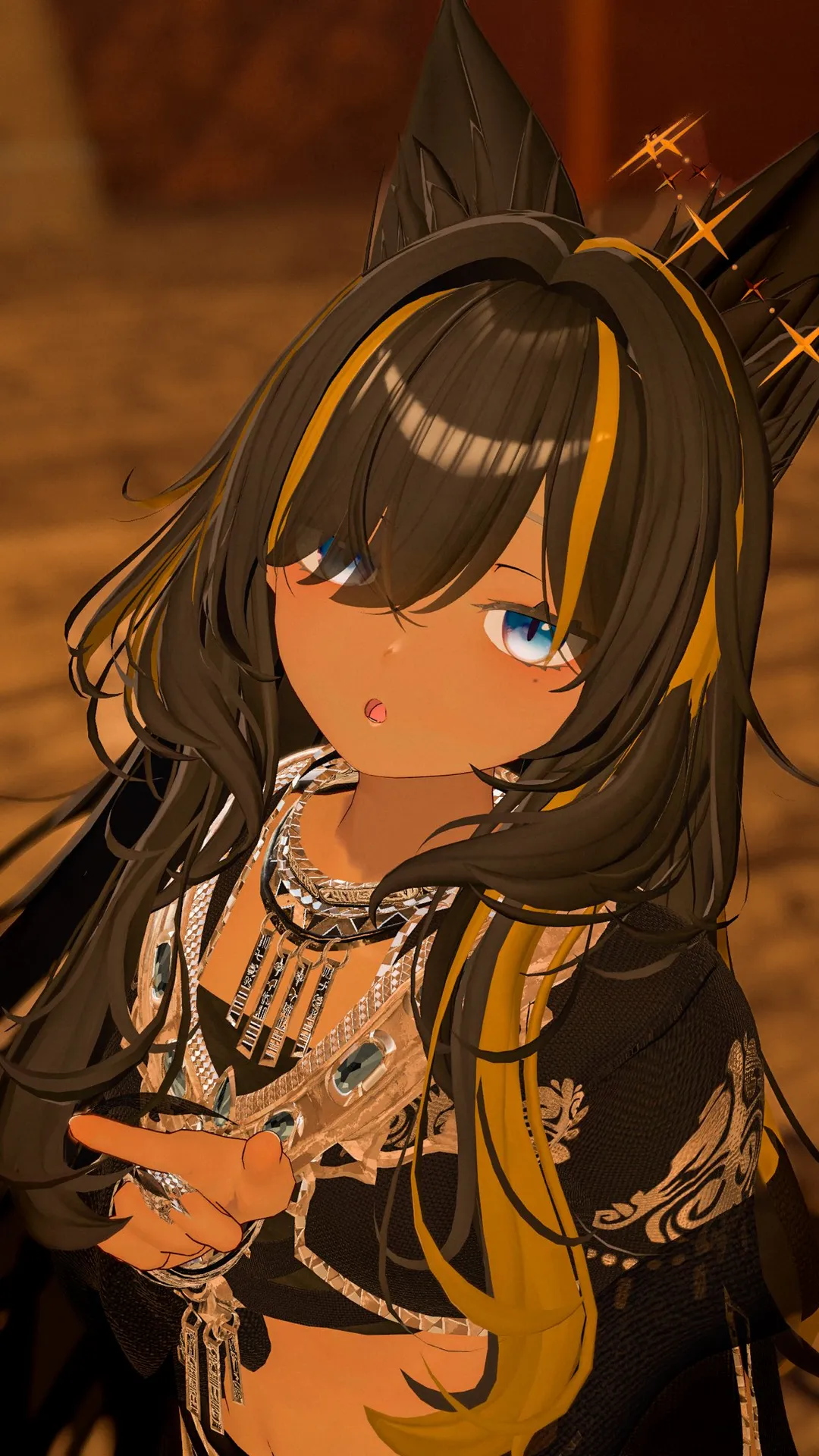DimgrayさんのANUBISがあまりによかったのでメンズ用ですが、購入。Blenderで頑張って対応しました。n女性アバター向けもそのうち出るらしいですよ。やったね。nnあとはそれに合わせたアイテムを選びました。n初めての褐色、初めてのヘイロー、初めてのメッシュカラーです。上手くいったほうだと思います。