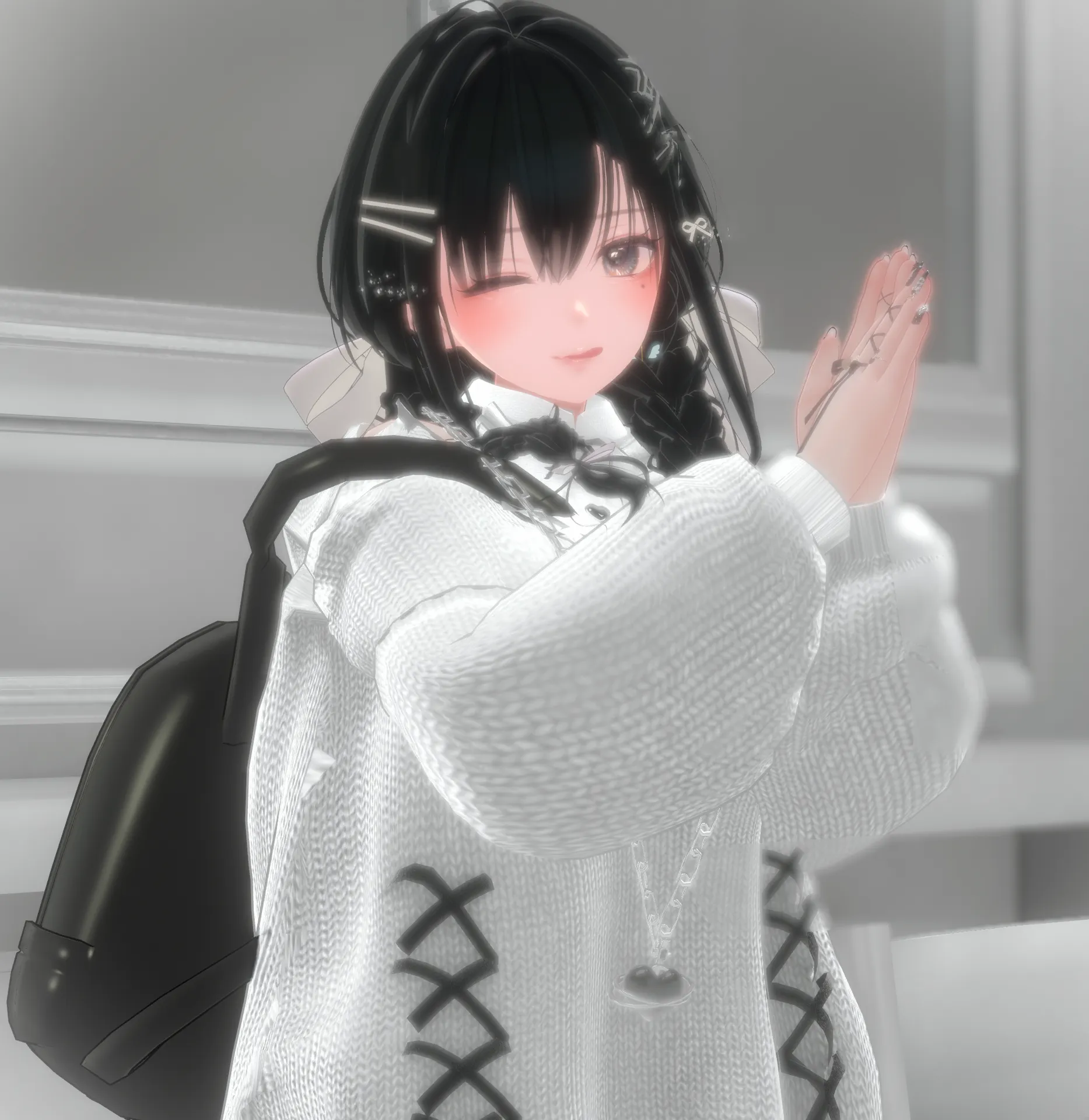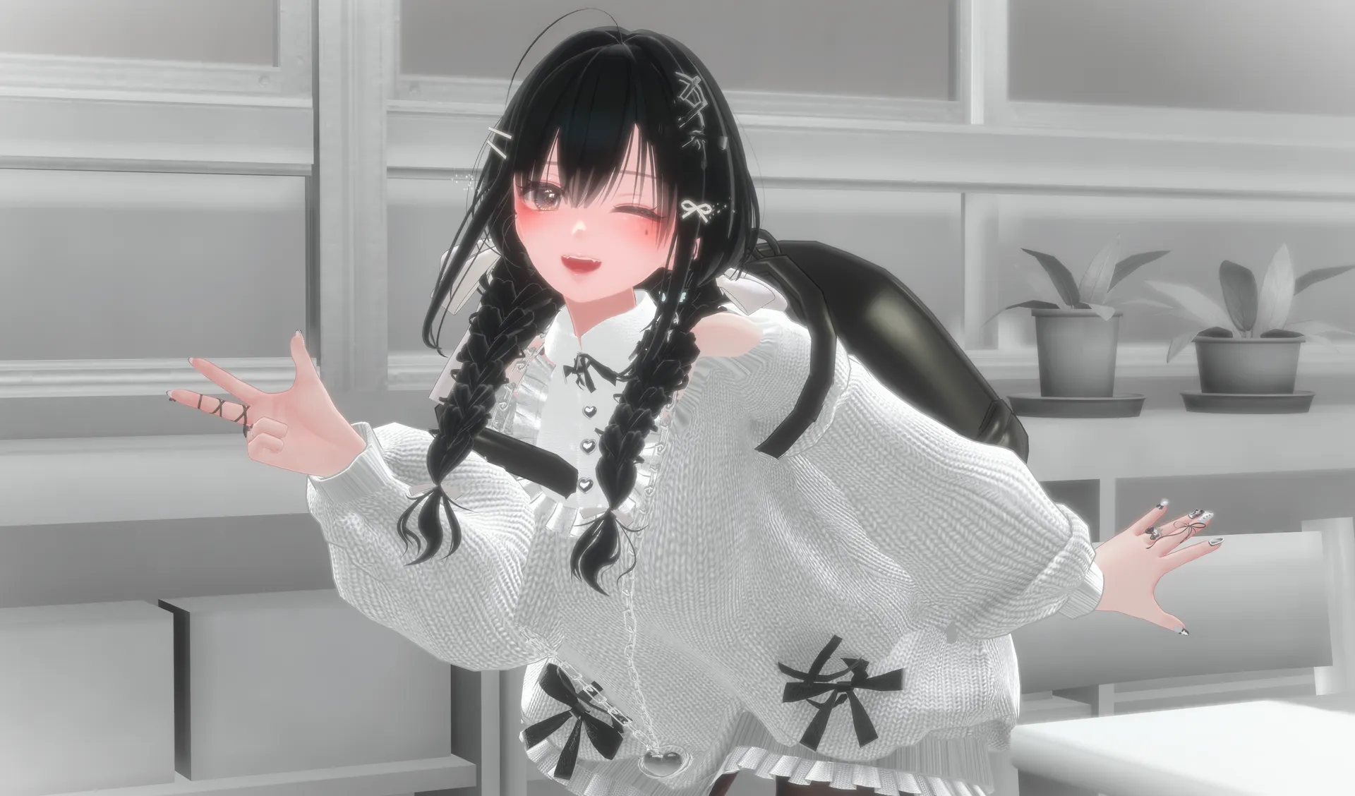 顔は森羅さん・体はセレスティアちゃんのキメラアバターです!nリボン増しましモノクロームコーデで仕立ててみましたっ!