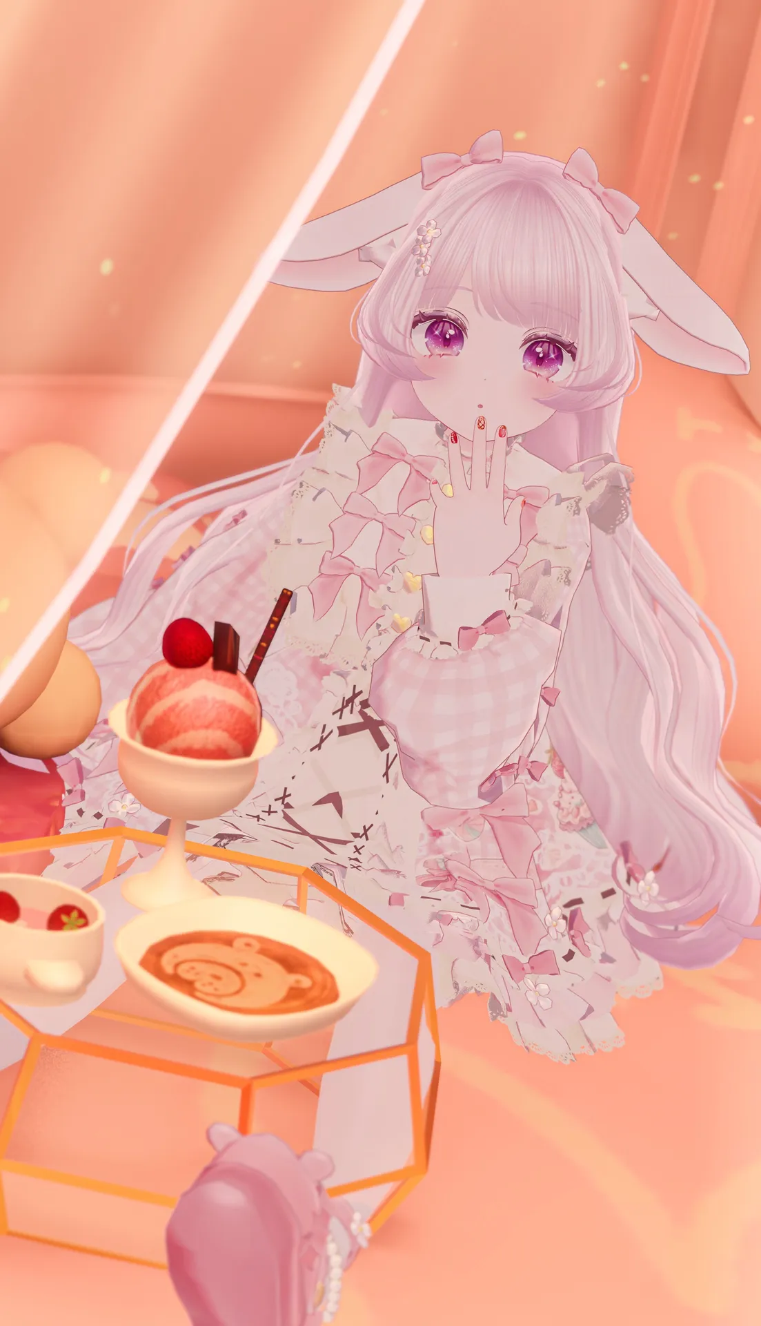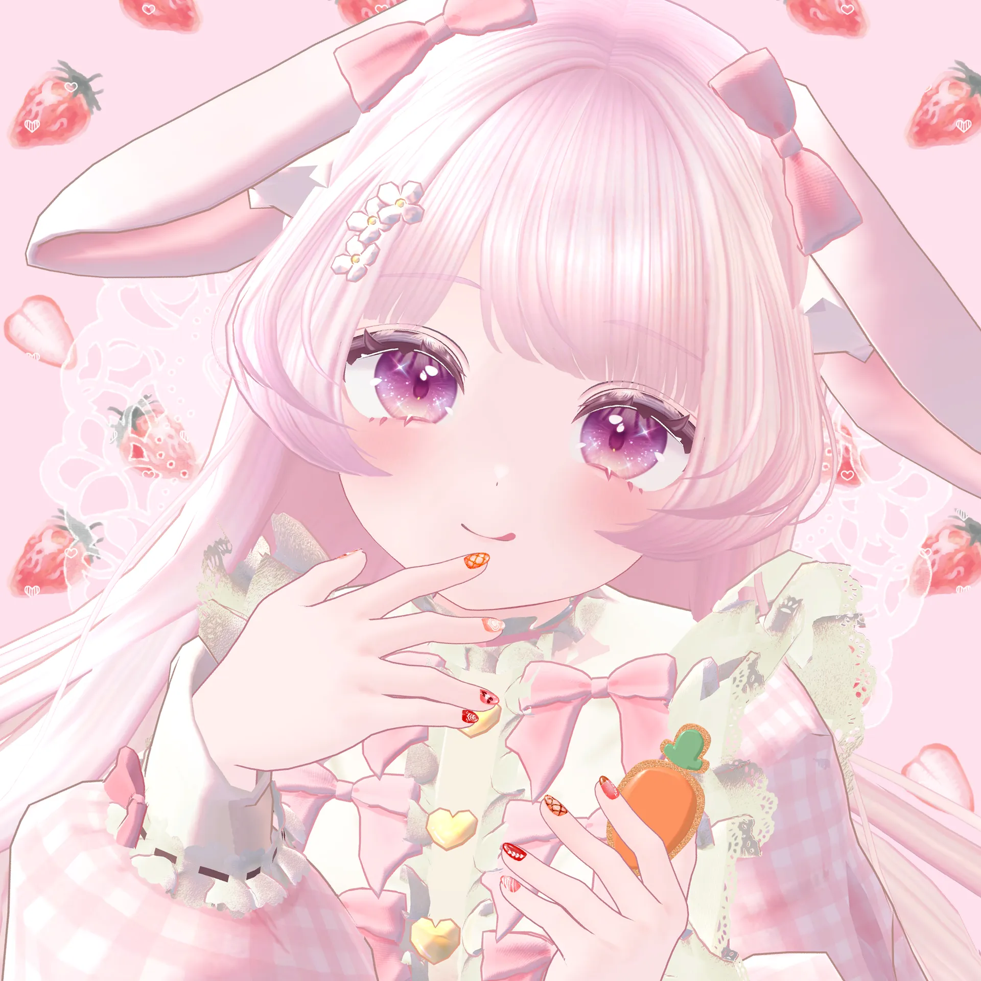 おもちやさんのネイルに合わせて改変したうさちゃん????nお洋服がりぼんとフリルがいっぱいでめちゃくちゃ可愛い、、、!!nnネイル撮る時に小物持つやつ、今回はにんじんクッキーを持たせてみたんですけど欲しいアイシングクッキーがなかなかなかったのでBlenderで自作してみました?