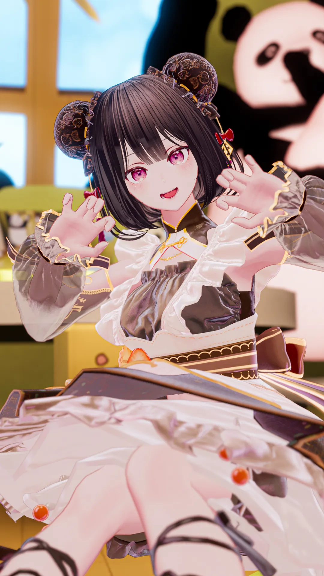 BonBon_Filleな墨澄ちゃんですnまだ着せてなかったモノトーンな色をチョイスして、パンダっぽくしてみました????nn告知ツイートに月餅が使われてたので月餅持たせてみたり(Boothに無料アイテムとしてありました神)パンダワールド探したり?!