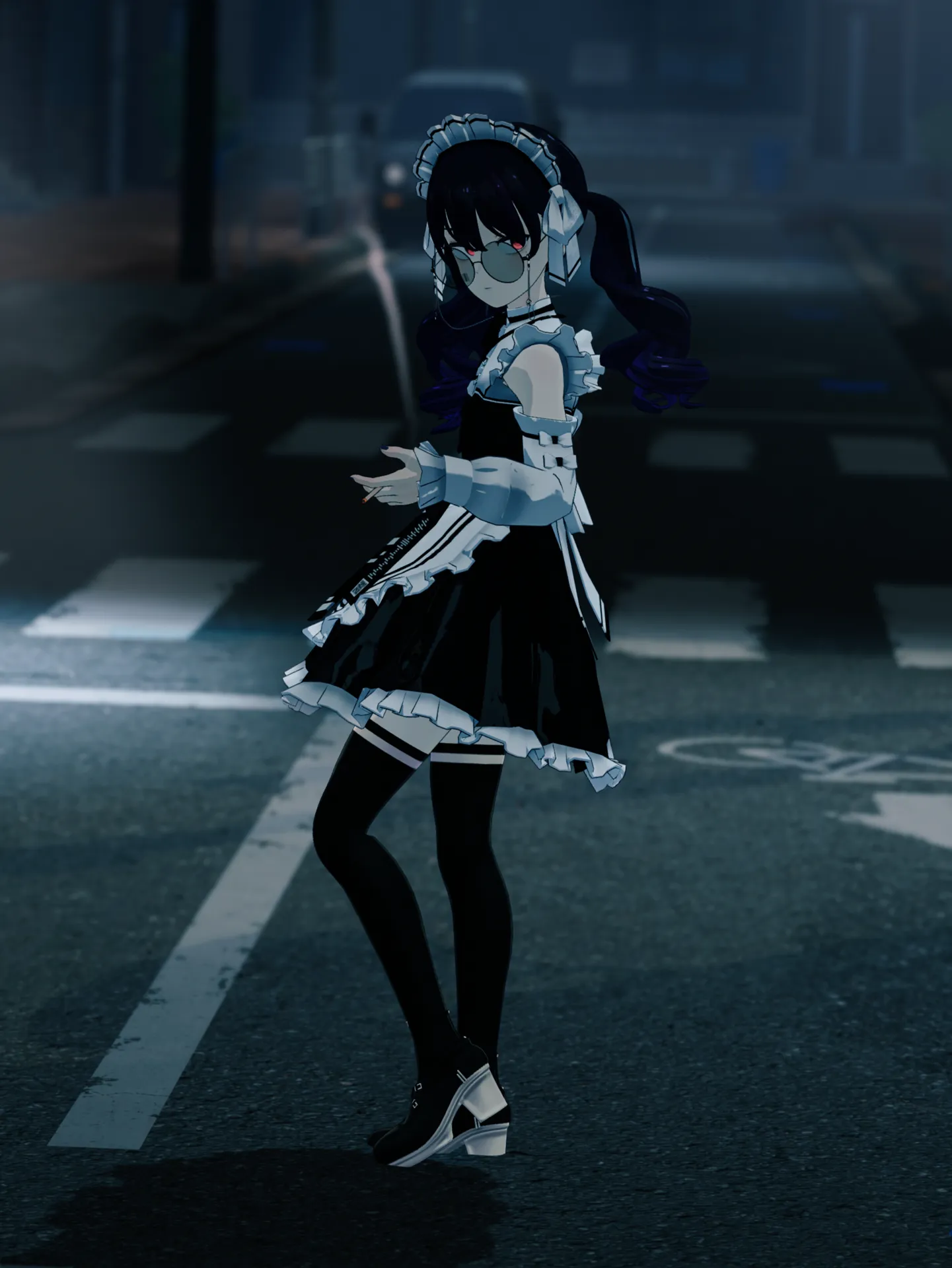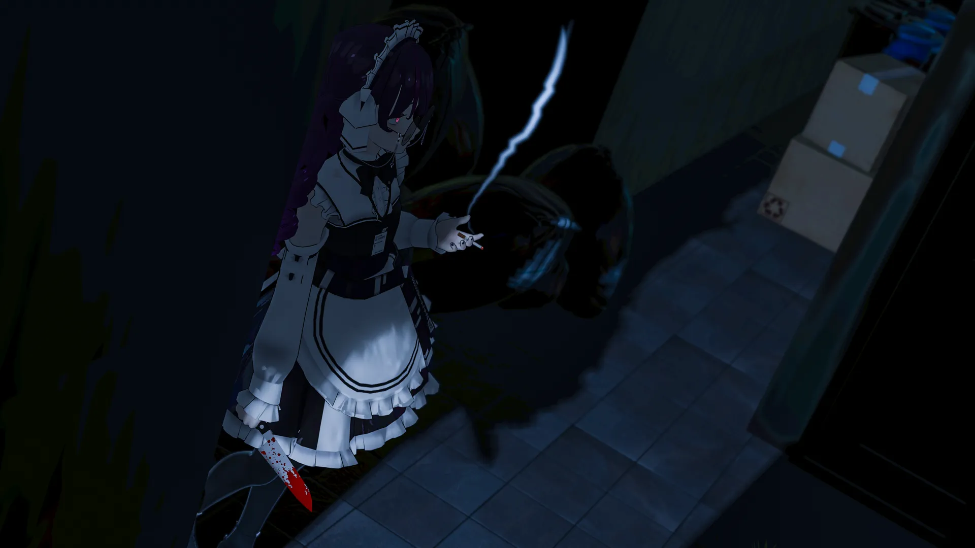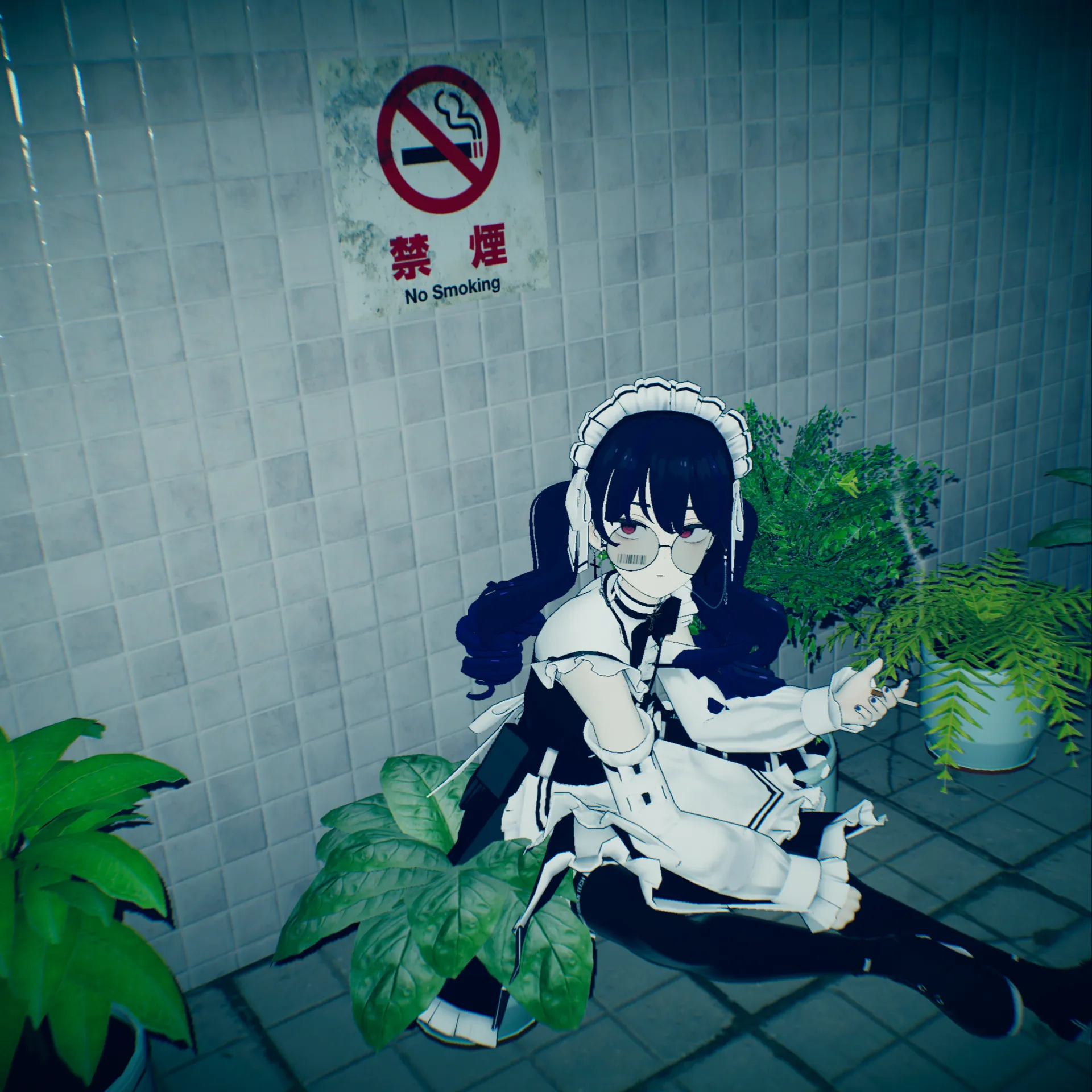 よくイラストで見てたメイド喫茶店の裏でしゃがんてタバコ吸っている不良メイドの概念を印象としての改変ですnnたまに包丁を持つ危ない奴になる