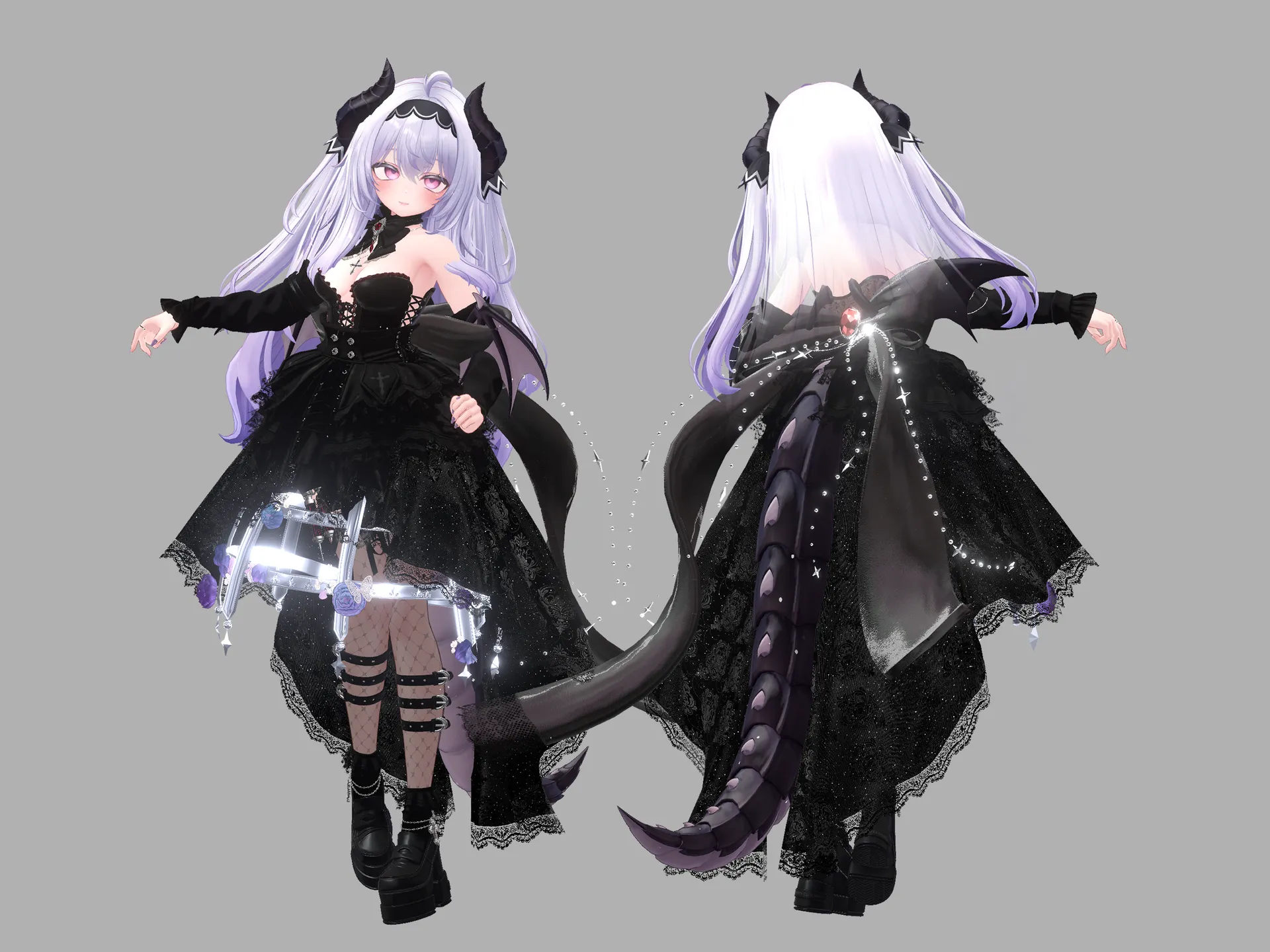 ドラゴン娘にはゴシックロリータがあいますね?nしっぽの上のリボンがお気に入りです。nn動画はこちら↓nhttps://x.com/meron_chanV/status/1833882077428850959