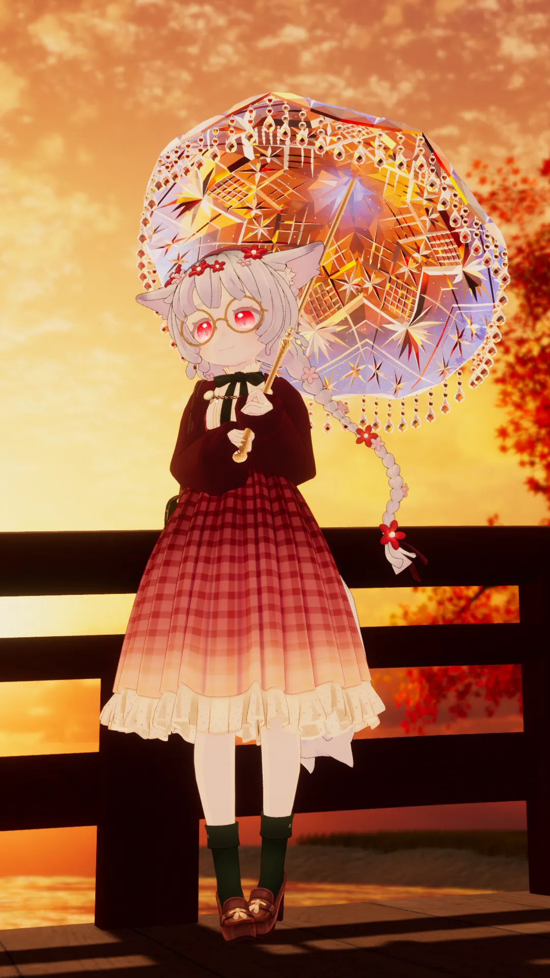半袖涼しげなお茶会ワンピースに長袖アウターを重ねて秋仕様にしました。切子傘との相性もばっちり??nベレー帽&丸メガネで文学少女感も。読書の秋!??nn※ワンピースのテクスチャ柄・ショルダーバッグは非売品です。