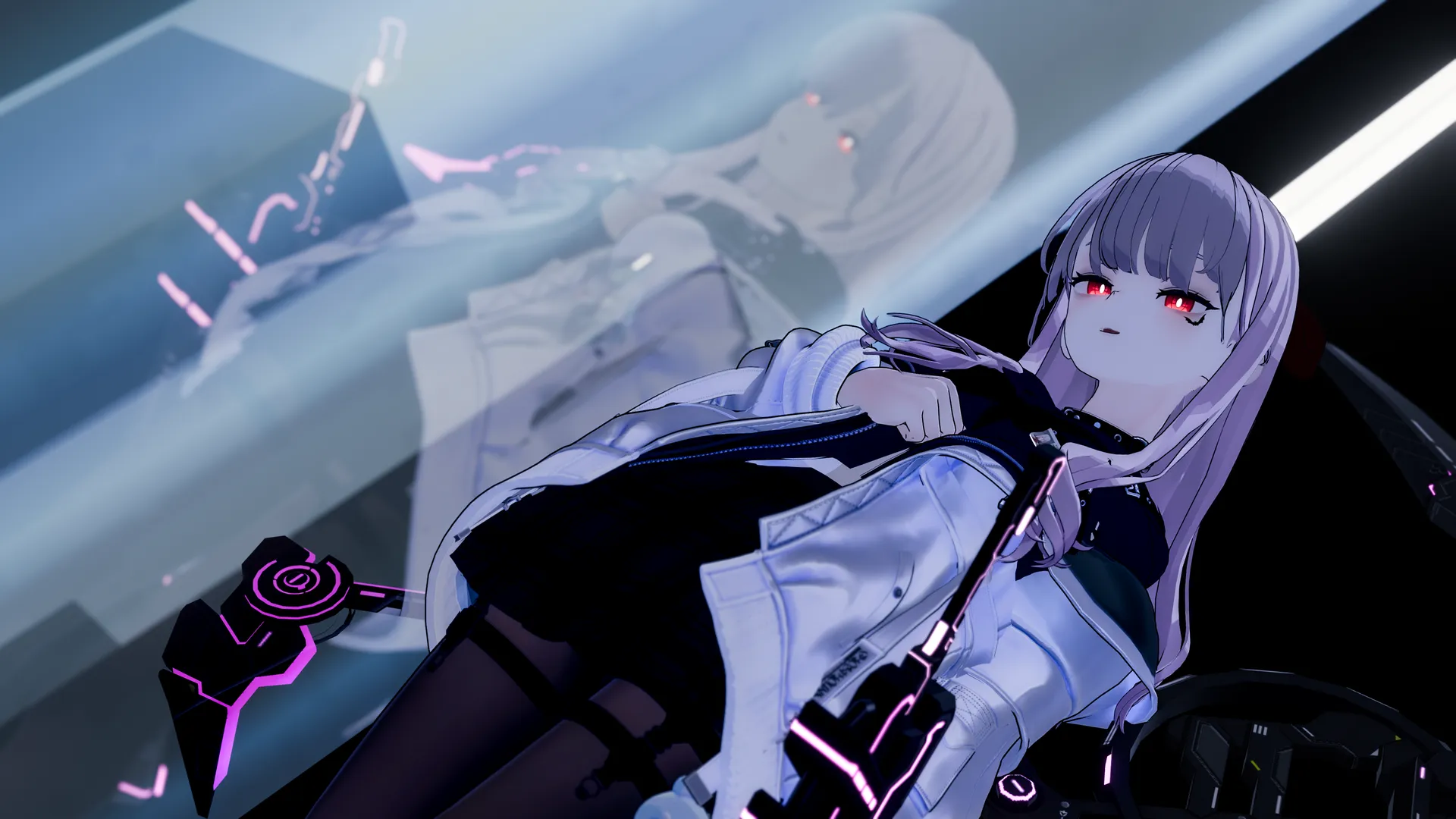 oath様のミッドナイトスクールの印象合わせ、現代+SFアニメでよくある戦闘+JK+敵キャラ概念の改変ですn髪はGrusロング+Lapwingデフォルトの後ろ部分n