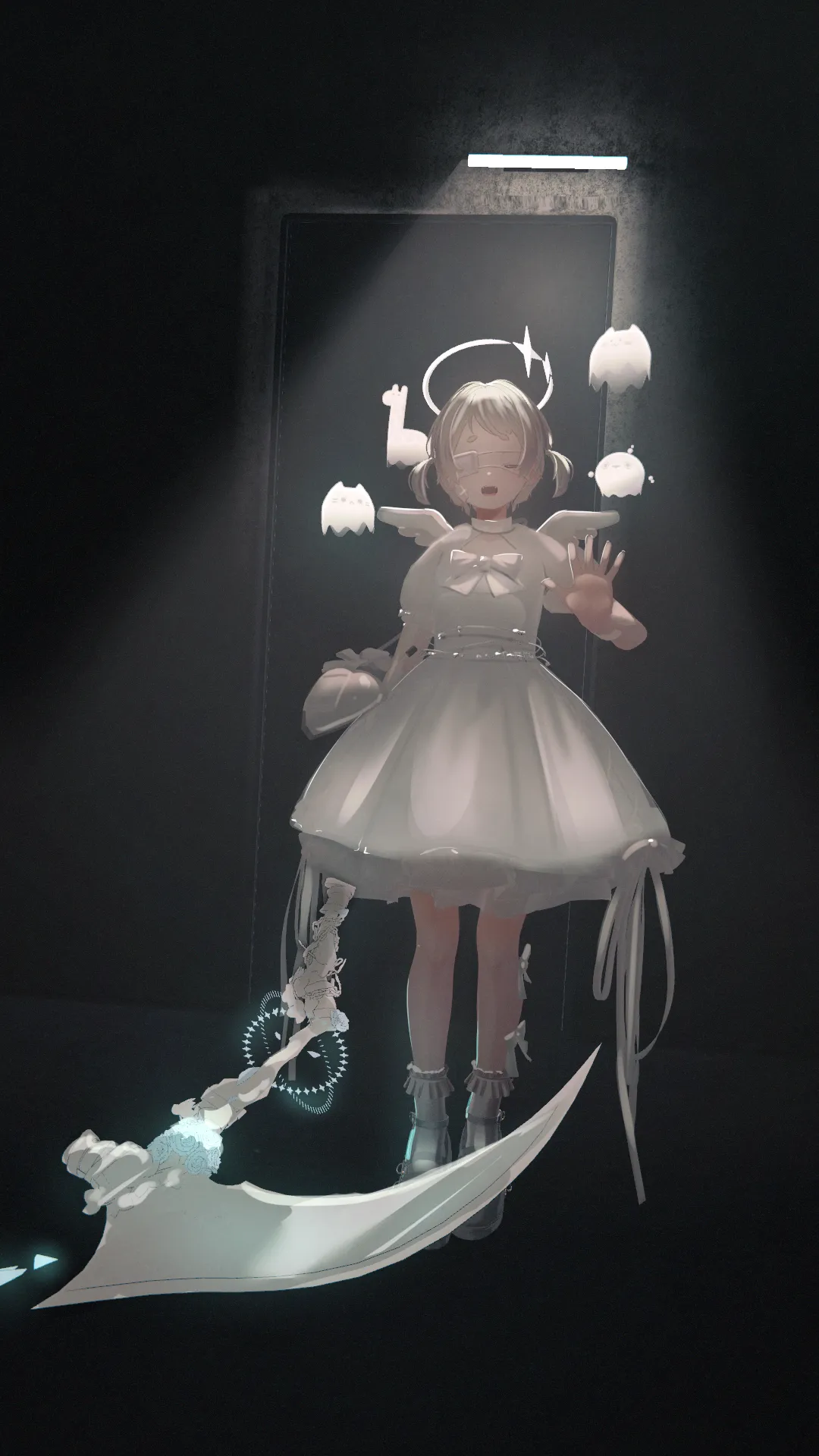 白い鎌に一目ぼれしたので、天使×死神をイメージして真っ白なコーデを組みました!nハロウィンも近いのでかわいい動物のゴーストも合わせてみたり。nnまっしろでかわいいのにちょっと闇がありそうな雰囲気が気に入ってます