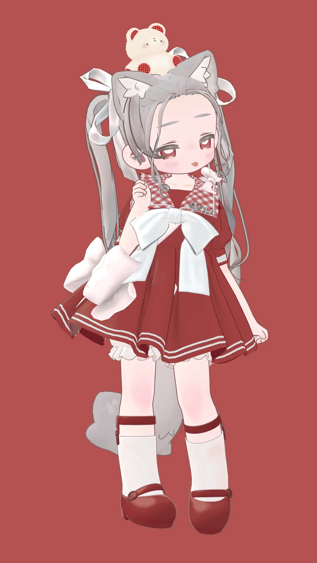 赤いワンピースのちょっと気が強そうなキプフェルちゃん改変です。nしっぽのリボンがチャームポイントです?nnリボンのバッグはIchicoro Plus様のファンボックスにて!素敵なのでぜひ!nhttps://www.fanbox.cc/@ichicoro-cocoro/posts/8145906