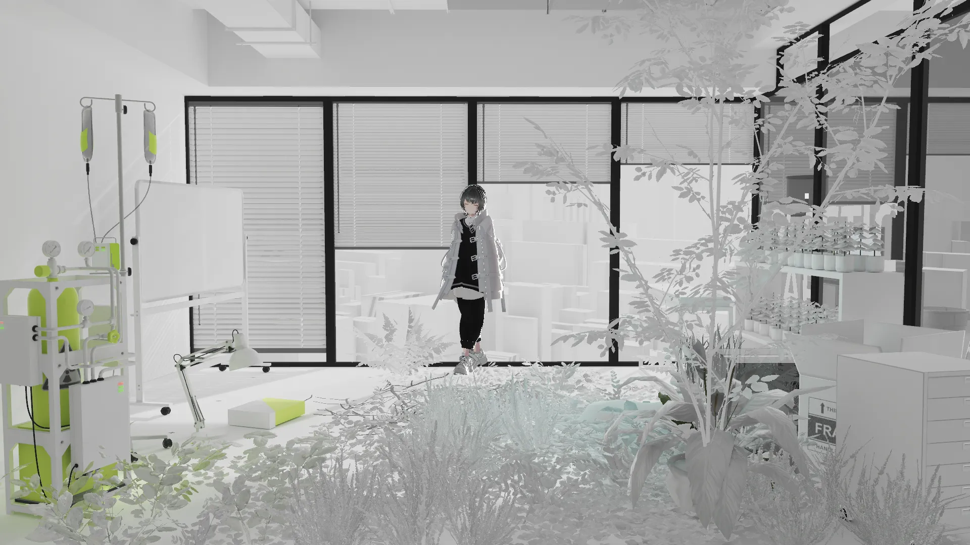 ワールドの雰囲気にも合わせてモノクロ+緑にしてみましたnワールド:https://vrchat.com/home/world/wrld_7a2ea7b8-7117-405f-9106-d994b9ed472an