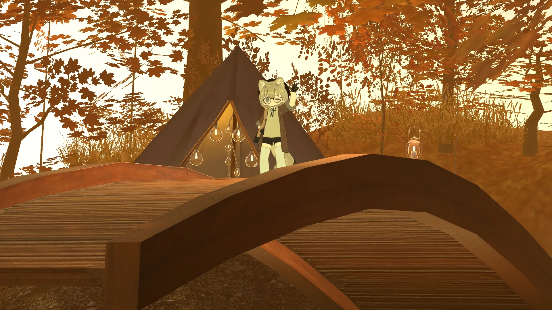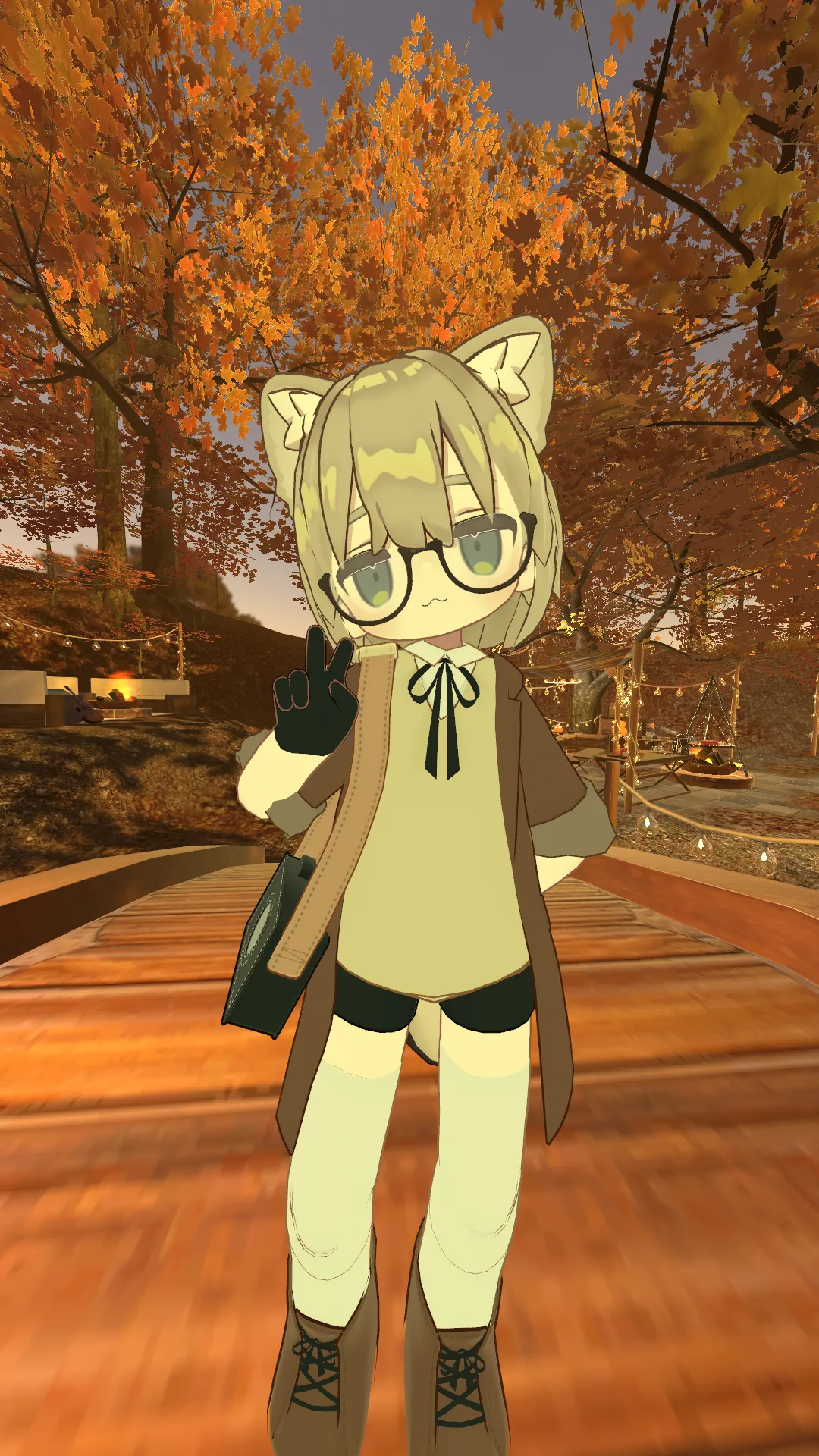 キプフェルがベースです。n少しボーイッシュなキプフェルをイメージして、髪型はボブ、服はユニセックスなコート+ショートパンツの衣装セットをお借りし、そこに黒縁メガネを付けました。nnベース:キプフェルn服:おさんぽかじゅあるこーでn髪型:もちボブ for Kipfel