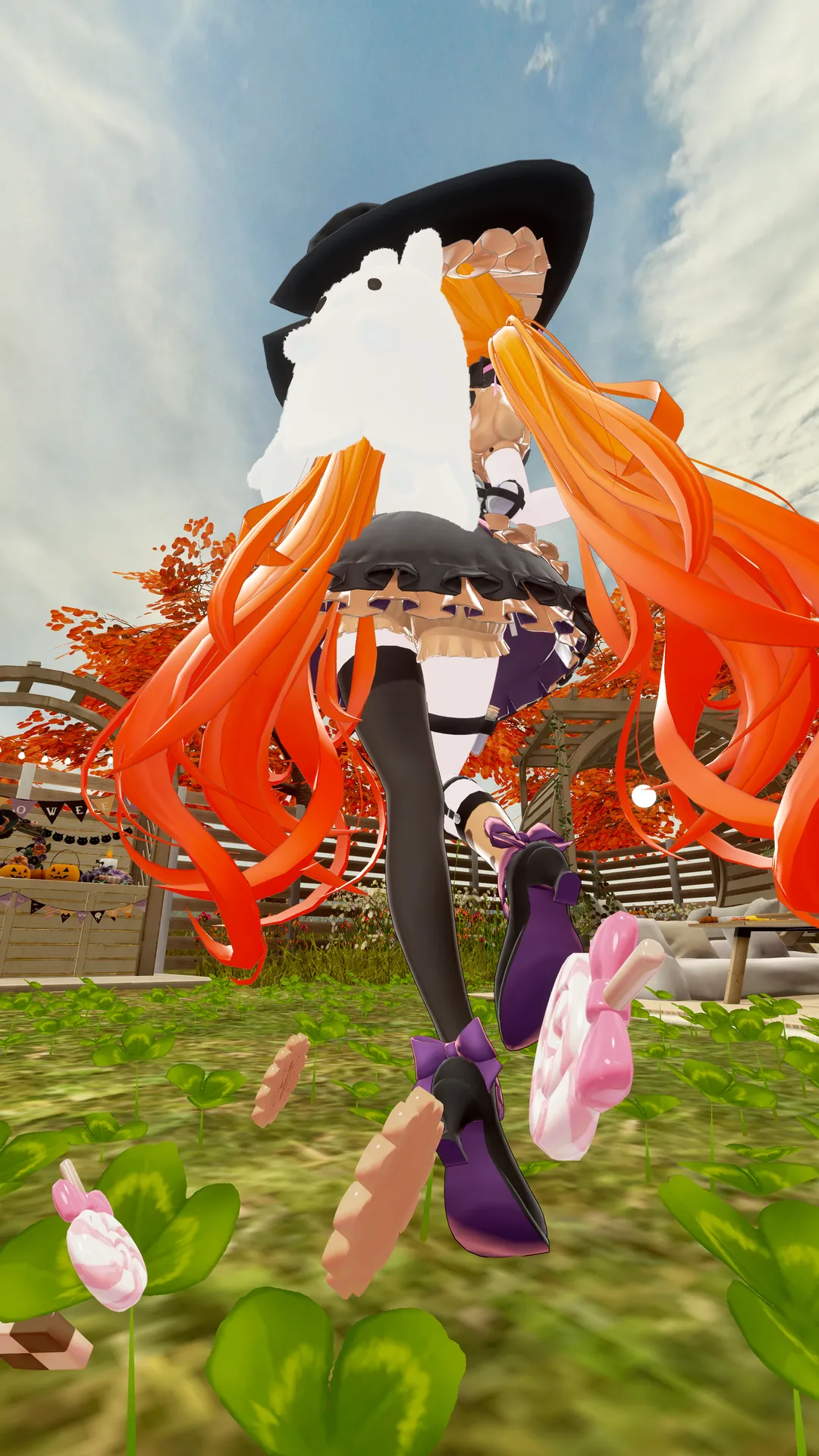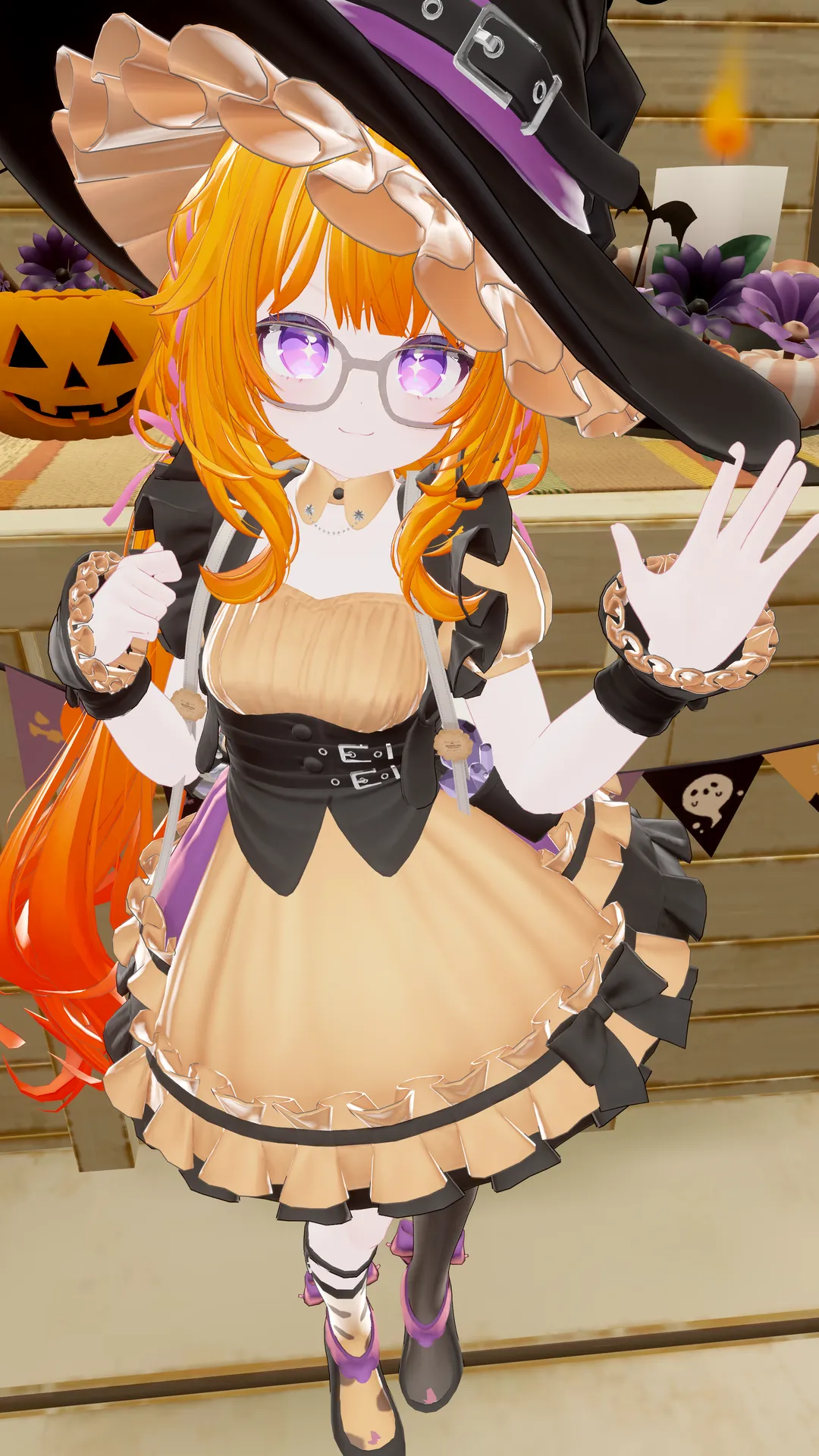 シフォンちゃんを改変しました!n魔女モチーフが好きなのとハロウィン月なのでnハロウィンカラーな魔女さんですn背中のうさぎリュックからお菓子をばらまきながら歩きますnトリックオアトリート!!